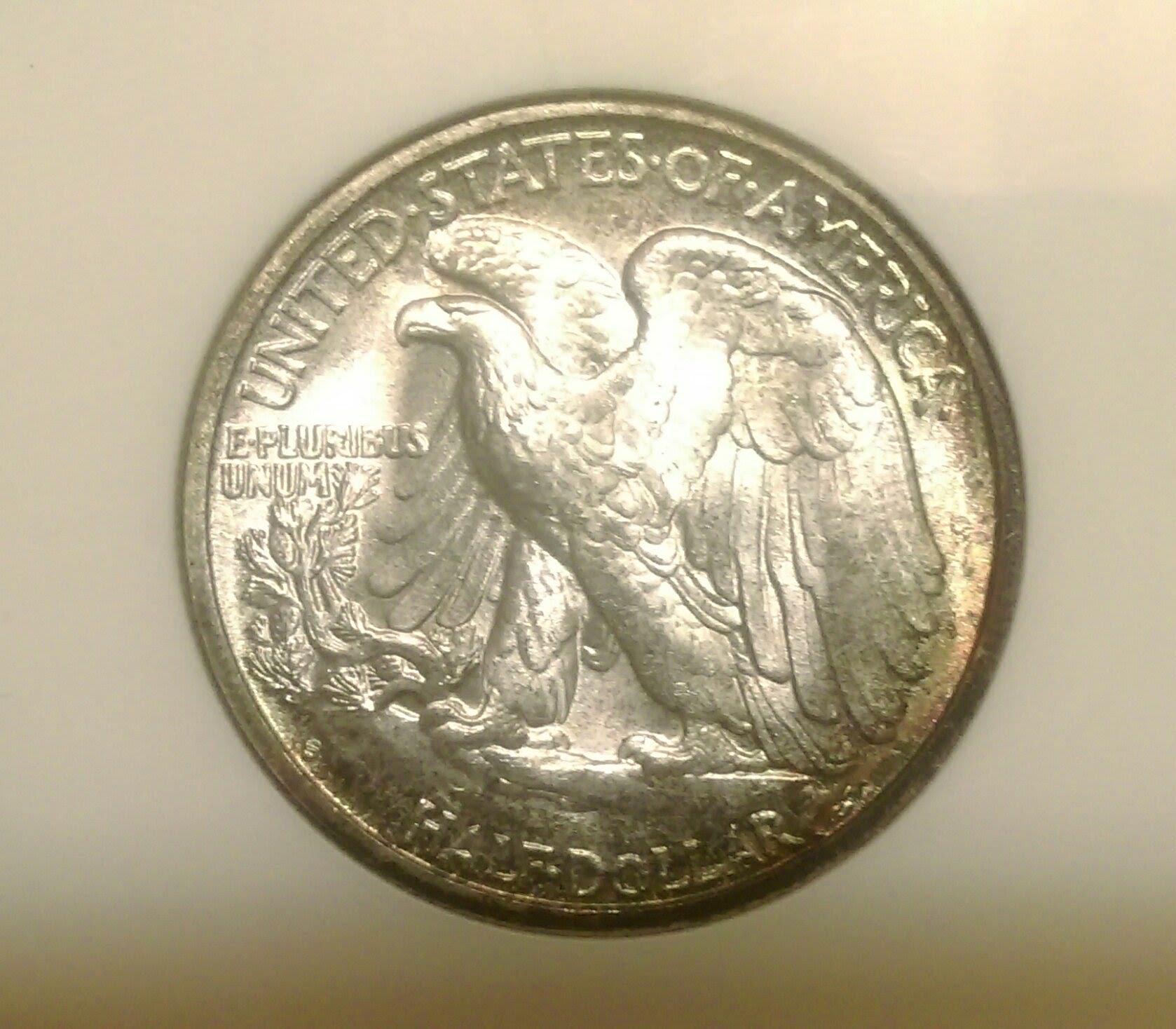 Since stars don't have a price guide (or even a good way of getting an average), let's just use the price of a typical MS 64: $45-$55 based on recent ebay sold listings. A toned Walking Liberty is much less common than many other series and stars are fairly scarce for them as well. This coin may have a significant premium. From the picture, it looks a bit dark but I'm guessing the colors must really pop to get the star. Final answer: $150 (you got a great deal and the value should be closer to $300-$400)