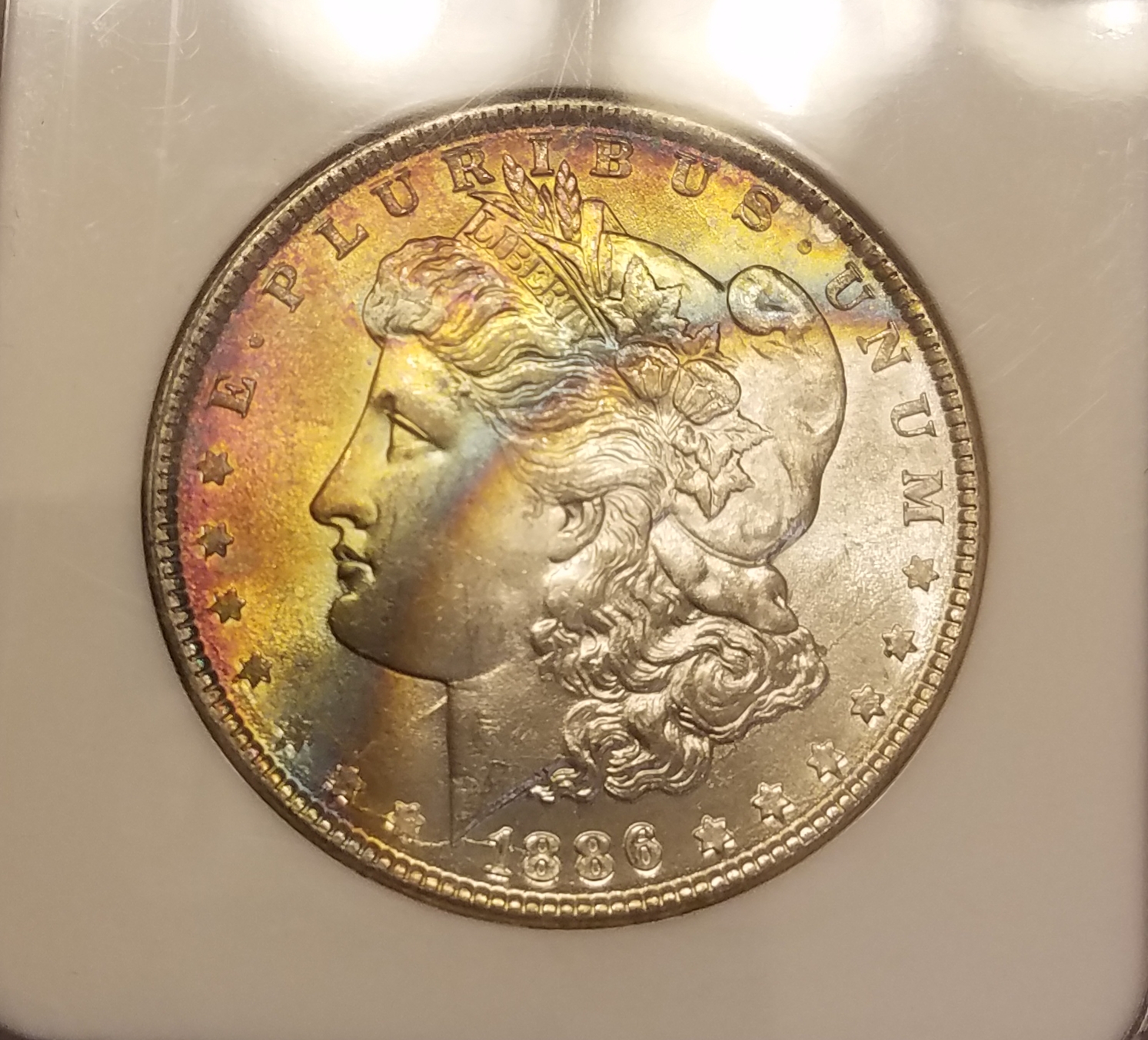 Hey im movin on up like George Jefferson!! Next up we have an obverse toned Morgan- NGC MS64 ( Greysheet bid is around $70 )