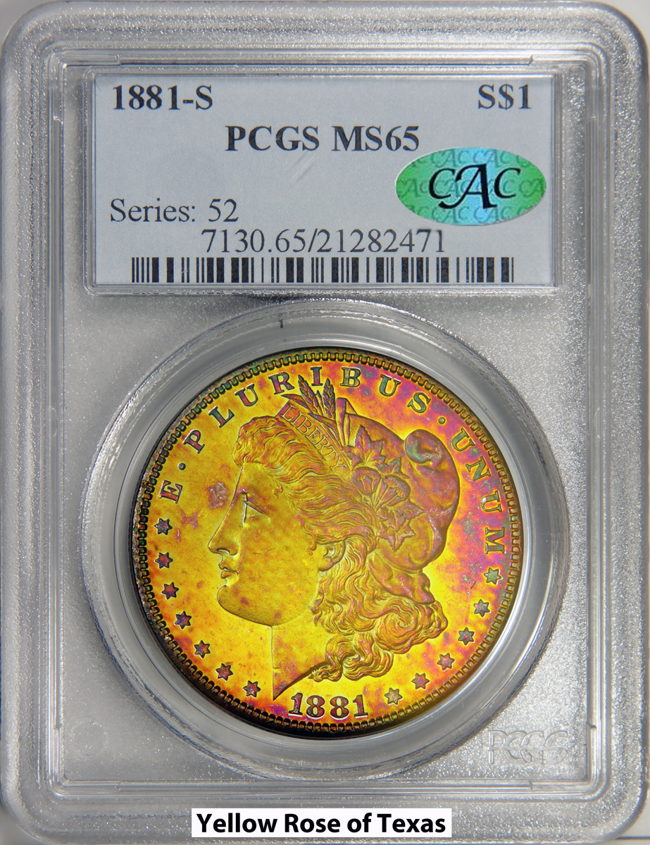 $1000 for @ron_c ...this is a fantastic Morgan. It has some textile toning, has bright colors that pop, and looks solid for the grade (I could see it being in a 66 holder nowadays).