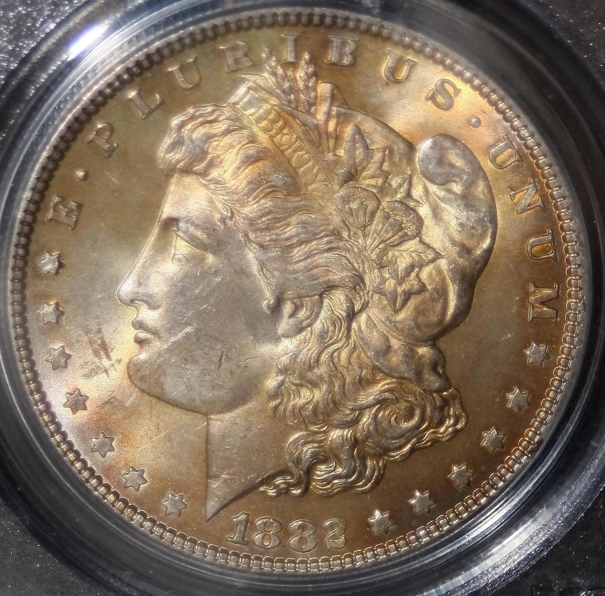 The premiums on toned coins will astonish you. I was counting a partial roll of 1954-S unc dimes for an inventory and noticed 3 really nicely toned specimens. Checking ebay I noticed areally nicely rainbow toned specimen (1954-S 10c NGC 67 I think) went for $198. Maybe I should send those dimes in but it is difficult for me to pay them $15- $20 to grade a coin I have 41 cents in. I have seen graded MS 63 40% common Kennedy Halves with monster toning go fo $35 - $50 on the Bay. People like toned coins and I gave up a long time ago as far as developing some "factor" to value them. Toning is a qualitative element in the process vs a quanitative factor like bullion value.