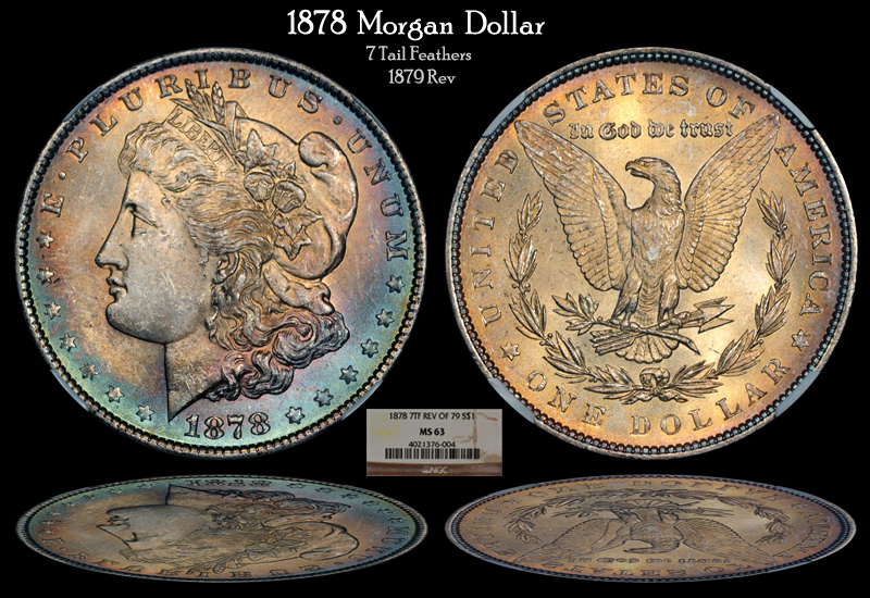 Thanks Oval! Actually the 1878 I have in hand ... and I LOVE it ... it's by far my favorite Morgan in my collection. The 1879 and 1880 will be here tomorrow I think, so I will let you know on those. You are right though, the 1878 is less blue around the edge in hand (but only slightly). The color in the seller's photo was so close to the coin in hand that I never re-photographed it. It's a STUNNING coin (to my eye at least!) and shows color in any light and at any angle. I think this is rare among toned coins as most seem to require a special viewing angle or lighting condition to show their color. Even right now, in my somewhat dark office under soft 30W lamp light, I have the coin propped up next to my computer monitor, and the blue color around the edge is very striking and visible -- and the entire coin has a soft golden color. The reverse is so golden that it almost looks like a gold coin. This coin is eye-candy to me. I will never sell this one!