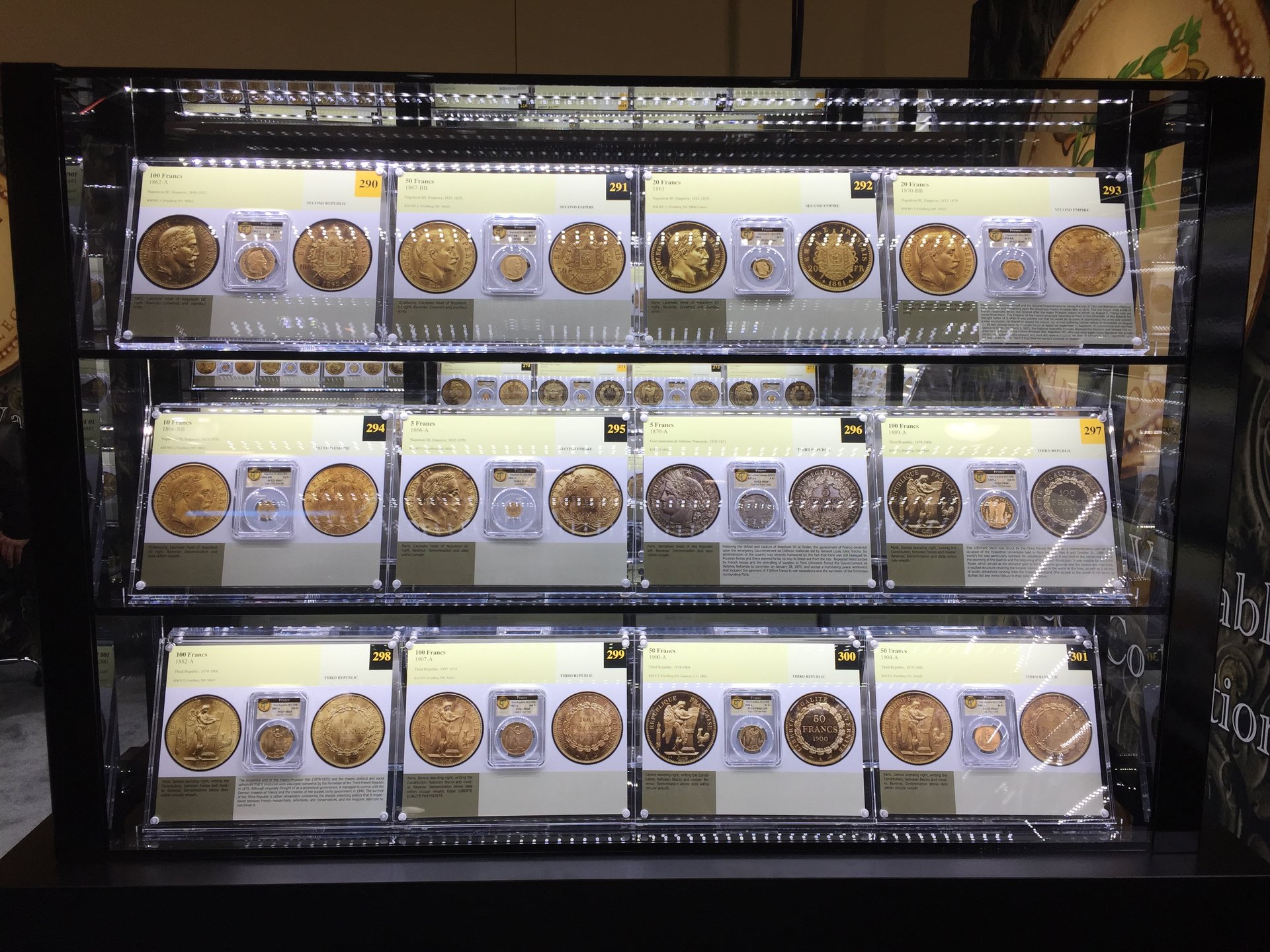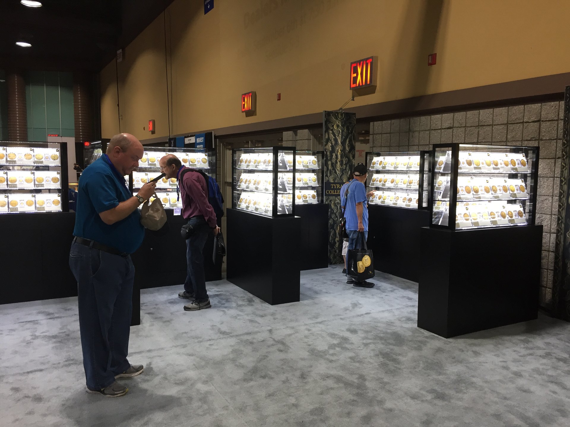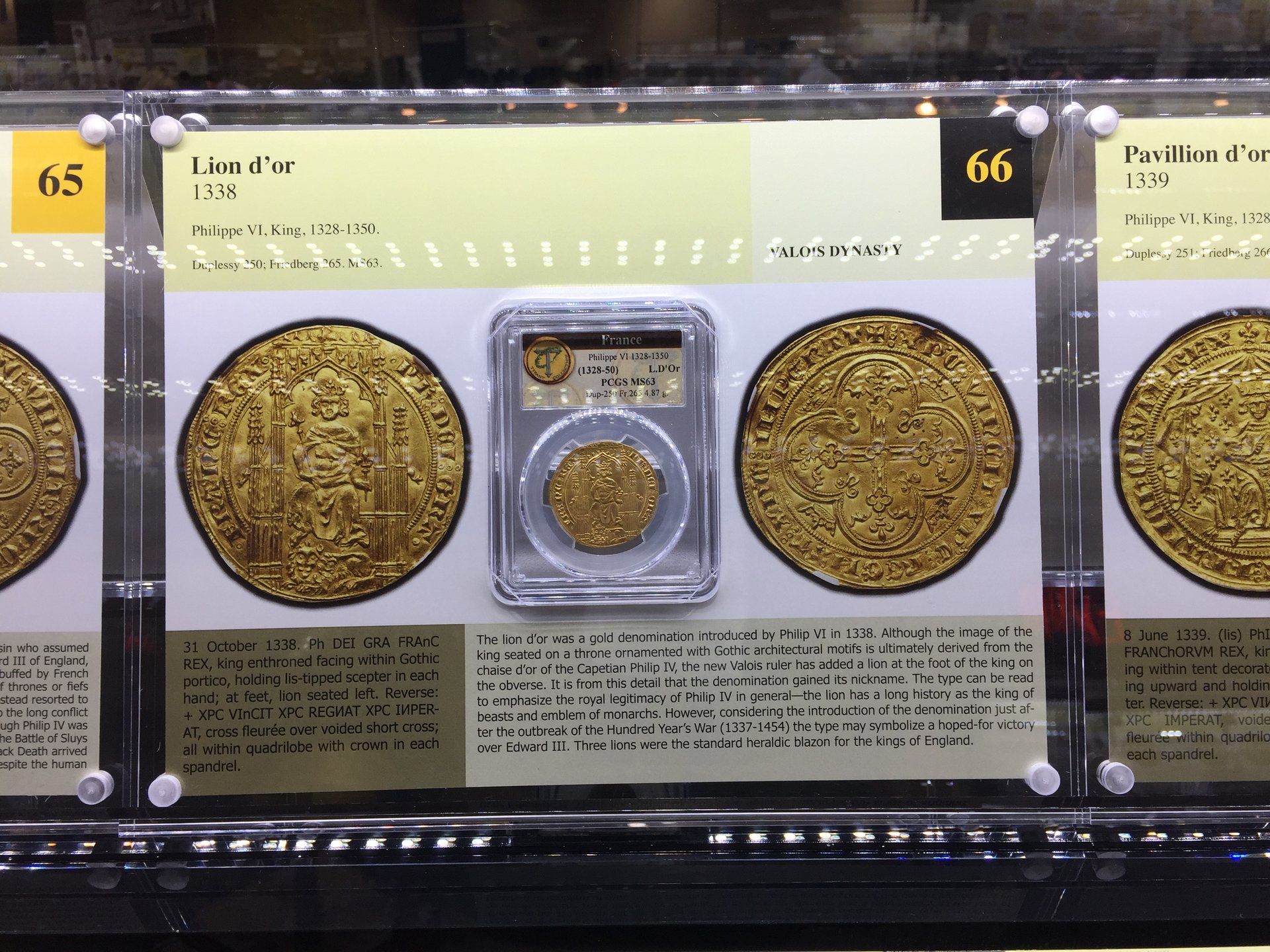 The displays at Long Beach are the best coin displays I have ever seen: coins displayed in about 80 degree vertical cases so you can see them very close and without having to bend down all the time and risk ruining your back; very strong lighting; enlarged photos of both sides of every coin; and detailed descriptions. The designer is a woman called Vera Liu who came to it with a background in design, not museums or numismatics.