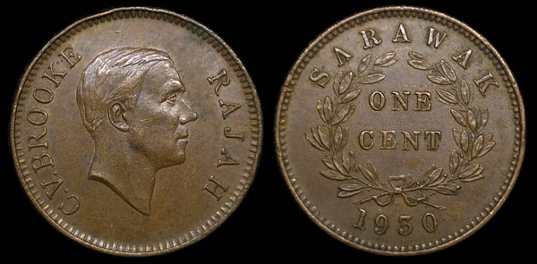 This one cent coin was minted By Ralph Heaton & Sons of Birmingham in the thirteenth regnal year of Charles Vyner Brooke. He is the third and last 'White' Rajah of Sarawak, a state on the island of Borneo ruled for about 100 years by the Englishman James Brooke and his family.