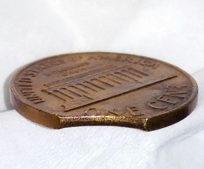 Take photos from directly overhead. The cent in your last group is PMD, not a clip. Note how the cut is angled toward the middle from both sides. That is an indication that a pair of nippers were used to cut it. The blanks cut for coins are cut from the top surface all the way through to the bottom surface. Chris