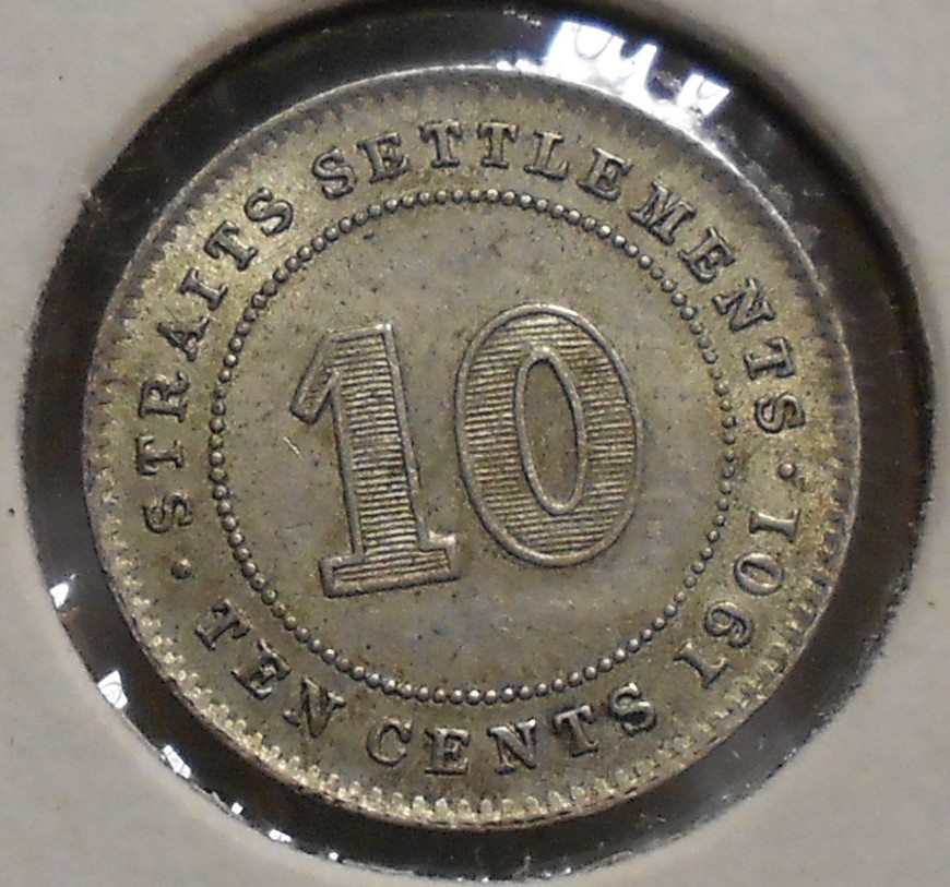 P.S. If I was to guess at the grade of the Straits Settlements coin, I would say it is an AU53. It appears to have some luster and some minor wear. It is a nice original coin that may have been in grandma's coin jar for 50+ years. I personally like the look. I probably would not like it as much if it were cleaned.