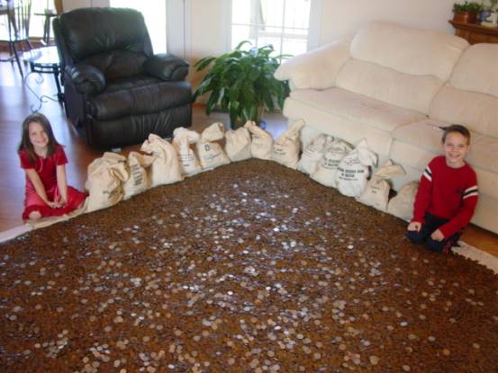 The boys knees on the coins will not damage the cent anymore than the last ones in a full bag of the coins. Why do people think the same coins they hold today havent been through the same treatment these coins have seen. All coins made at the mint for public use as money are not given the cotton glove treatment. On one tread i read where they shoveled morgan dollars into bags at the mint. They were made to be used and thats how i treat mine iv never handled a coin with gloves and i do use my fingers as they were intended to be used.TO EACH HIS OWN BUT SOME ARE OVERKILLED.