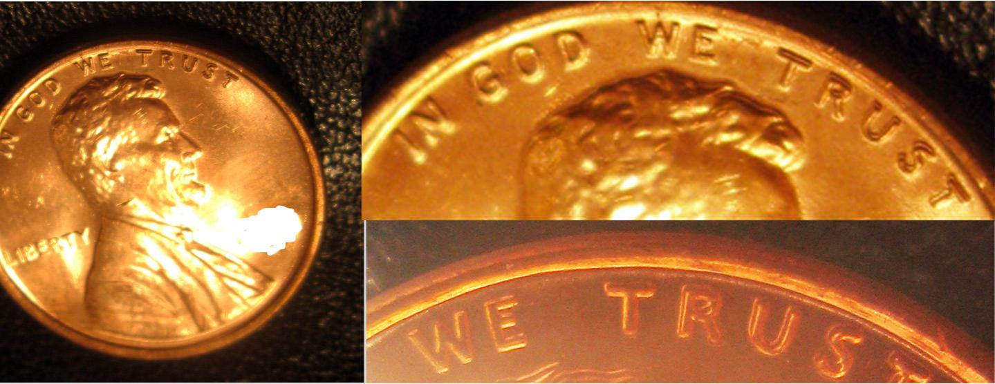 So, im looking for your opinions on this coin, around "TRUST" in the motto. Been trying to get a decent, close non-blurred pic, but im still crappy at it lol. Hope this is good enough to see it. The darker lower right image is shadowed on the "ST", but it looks raised under magnification. So, machine doubling? Or better pics? Thanks