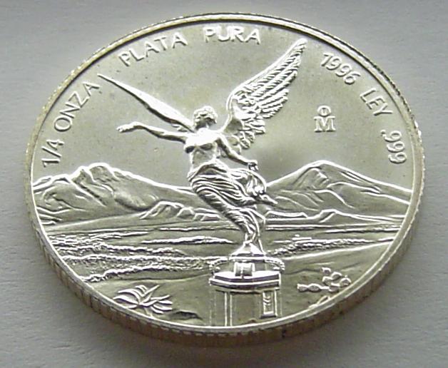 Beautiful coin you have there. I always liked the Silver Panda coins.... I wish I had bought some when I had a chance to get them at very reasonable prices.... oh well. I too like the other World 1oz silver coins. I have a Mexico 1985 un Onza Libertad as well as a 1996 1/4 onza. They have different designs, both beautiful.... The 1 onza has edge lettering, and the 1/4 onza has a reeded edge. The 1/4 onza has a mintage of 50,000 and is a very beautiful coin, I inclue a photo of it. Mmmmm Plata Pura.... I also have a couple Maple leaf 1oz coins, and several extra nice Silver Eagles, including a 1994 that is NGC MS 69 and a 2001 Westpoint Mint Proof Silver Eagle, which is my favorite Silver Eagle.