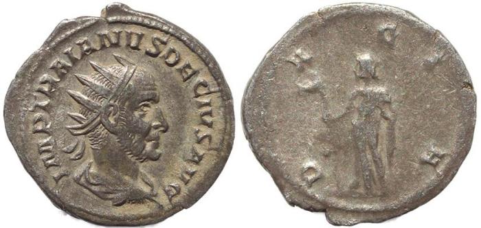 I forgot to share before, I made a little 360° video of my coin so you can get some depth-perspective of Dacia and her staff https://streamable.com/9wmd1p Trajan Decius; 249-251 AD, Rome, Antoninianus, 4.37g. RIC-12b, C-16. Obv: IMP C M Q TRAIANVS DECIVS AVG Bust radiate, cuirassed r. Rx: D - ACIA Dacia standing l. holding staff surmounted by ass's head. From the Philip Ashton Collection, acquired from Alex Malloy, December 1999