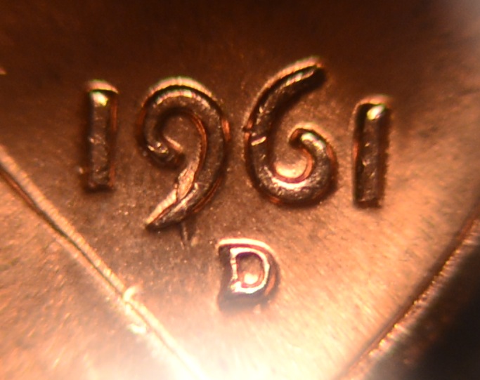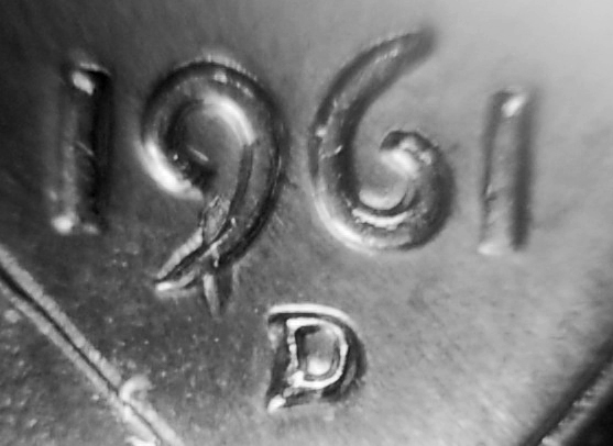 NOTE: I also posted this on the CONECA forums to get more info, but since I know CoinTalk has decent traffic...thought I'd ask for some opinions here, too. Thanks! Recently, I purchased a lot of clad coins from a customer of a local coin shop (the coin shop told him to take them to the bank, I asked politely if they would mind if I purchased them to check for varieties, and they had no issues with it.) As they were counting the silver, and picking out the wheat cents, they put together a pile of coins they didn't have any use for. (I just wanted to say that right off the bat...they chose everything I bought/they didn't buy.) I had them count the loose coin, the seller counted the rolled coin, and I paid him FV plus $25 for the privilege of cherry picking the lot. I've spent about a week going through everything (about $150 face), and I only have about 7 BU rolls of Lincoln Memorial Cents left to go through. Here is a short list of my findings to this point: *636 dated Buffalo Nickels (circulated) *46 War Nickels (circulated) *15 BU Lincoln Memorial Cent Rolls (1959, 1960D-4, 1961D-2, 1962D-5, 1963, 1963D-1, 1968S) *1938 D Jefferson Nickel (F) Mint Errors: *Lincoln Cent Blank Planchet (2) *1941 Lincoln Wheat Cent Mint Clip (MSBN) *1944 Lincoln Wheat Cent Mint Clip (XF) *1944 Lincoln Wheat Cent Mint Clip (AU) *1957 Lincoln Wheat Cent Mint Clip (XF) *1965 Lincoln Memorial Cent Mint Clip (AU) *1983 Lincoln Memorial Cent "Spiked Head" Obverse Die Crack *1988 Lincoln Memorial Cent Reverse Die Crack, Numerous Die Polish Lines/Scratches *1936 Buffalo Nickel Reverse Die Crack *1964 D Jefferson Nickel Mint Clip (AU) *Roosevelt Dime Blank Planchet Varieties: *1944 D/D Lincoln Wheat Cent (CONECA #2, WRPM-001) (VF) *1956 D/Shadow D Lincoln Wheat Cent (CONECA #8, WRPM-008) (AU) *1959 D/D/D Lincoln Memorial Cent (CONECA #1, WRPM-001) (XF) *1959 D/D/D Lincoln Memorial Cent (CONECA #1, WRPM-001) (MSRD) *1959 D/D Lincoln Memorial Cent (CONECA #4, WRPM-004) (MSBN) *1959 D/D Lincoln Memorial Cent (CONECA #10, WRPM-010) (XF) *1960 DDO Lincoln Memorial Cent (Unattributed) (MSRB) *1960 D/D Lincoln Memorial Cent (CONECA #5, WRPM-010) (MSBN) *1960 D/D Lincoln Memorial Cent (CONECA #16, WRPM-016) (AU) *1960 D/D Lincoln Memorial Cent (CONECA #23, WRPM-006) (MS Cleaned) *1960 D/D Lincoln Memorial Cent (CONECA #26, WRPM-022) (MSBN) *1960 D/D Lincoln Memorial Cent (CONECA #63, WRPM-051) (MSBN) *1960 D/D Lincoln Memorial Cent (CONECA #63, WRPM-051) (MSBN) *1963 D DDO Lincoln Memorial Cent (CONECA 1-O-VII) (MSRB) *1936 D/D Buffalo Nickel (CONECA #2) (VG) *1936 S/S Buffalo Nickel (CONECA #1) (VG Scratches) *1936 S/S Buffalo Nickel (CONECA #1) (F) *1939 DDR Jefferson Nickel (CONECA 1-R-IV) (F Scratches) *9 1941 S Jefferson Nickel "Large S" *18 possible 1941 S Jefferson Nickel "Inverted S" *1954 S/S Jefferson Nickel (CONECA #1) (VG) *1970 Roosevelt Dime "Reverse of 1968" Proof Die Reverse (CONECA RDV-002) (VG) *1970 Roosevelt Dime "Reverse of 1968" Proof Die Reverse (CONECA RDV-002) (F) *1970 D Roosevelt Dime "Reverse of 1968" Proof Die Reverse (CONECA RDV-002) (VF) *1971 D Eisenhower Dollar "Friendly Eagle" (CONECA RDV-006) (MS) Now, I'm poring through the last few rolls of Memorial Cents (a 1961 D BU roll), and I have come across something I've not seen before. There is a large raised area projecting through the lower tail of the 9 of the date. It almost looks like a portion of the 9 was broken off, flipped on its axis, and punched in underneath the final date (sort of gives the effect of those ribbons you see memorializing some particular cause...) I checked my Cherrypicker's Guide...nothing. I checked CONECA's Master Listings...nothing. I checked Ken Potter's Error & Variety Listings...nothing. I checked John Wexler's Coin and Die Varieties website...nothing. Google? Nope. So, I ask you guys/gals...what's going on here? What did I just pay $.01 for? I am including a full coin shot of the obverse and reverse, as well as a few magnified shots of the date/MM. I also will include a black & white version, plus a copy of the black & white version that's been edited a bit in Photoshop.