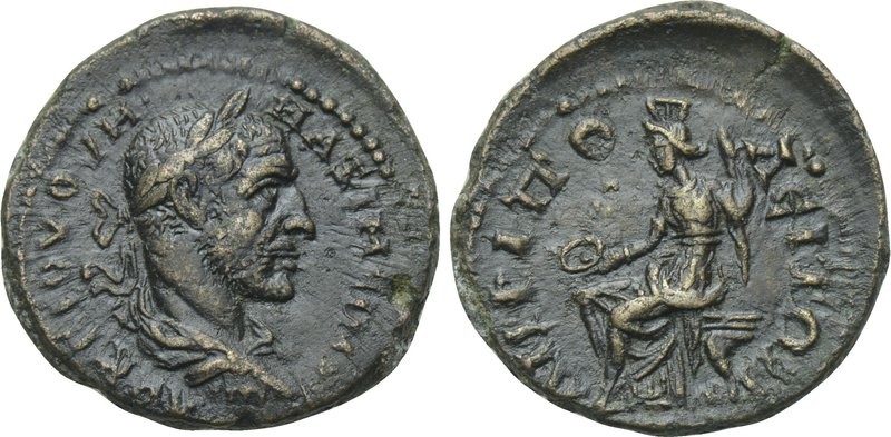 Here is a similar but not an exact match. MACEDON. Amphipolis. Maximinus I (235-238). Ae. Obv: AV K Γ IOV OVH MAΞIMINOC. Laureate, draped and cuirassed bust right. Rev: AMΦIΠOΛЄITΩN. Tyche seated left, holding patera and cornucopia. SNG Copenhagen 119 var. (obv. legend); SNG ANS -; Varbanov -; BMC -. Rare Condition: Near extremely fine. Weight: 8.29 g. Diameter: 23 mm.