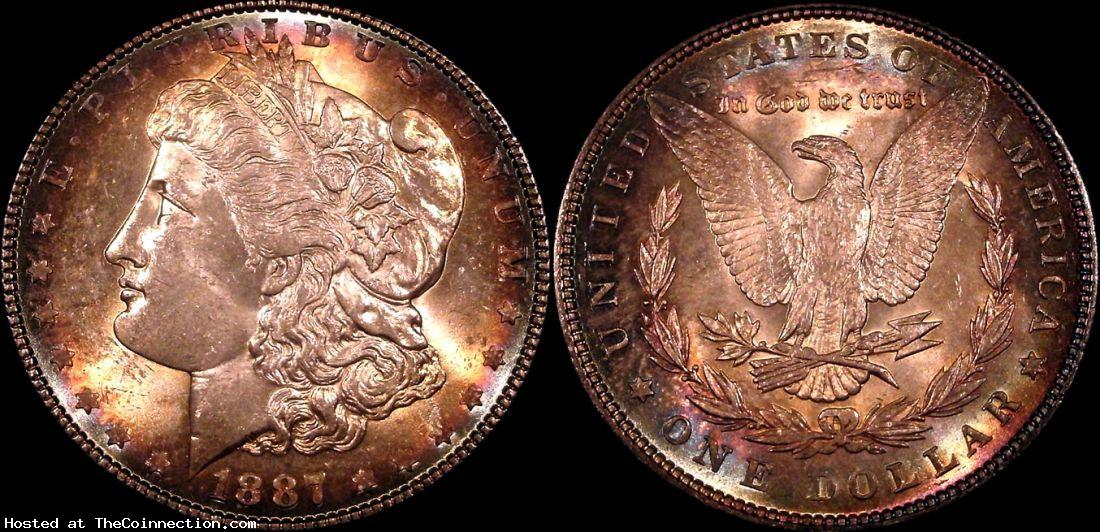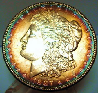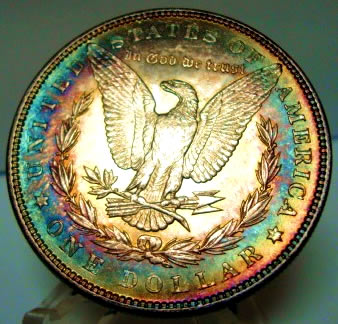 I will reserve my opinion until you get them and show us some sweet pics. After buying so many toned coins from ebay, one thing I learned is the pictures are rarely accurate as far as the colors go. Here is a great example of a morgan I bought from ebay. I knew these were juiced and in fact, made them look artificial. I had a sneaky suspicion it was natural and from the Tidy House cardboard giveaways. sellers pictures: What it looks like in hand (shot with different lighting):