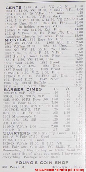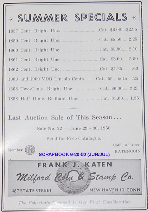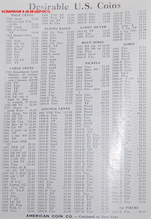 Whatever happened to the NUMISMATIC SCRAPBOOK, anyway? It was by far the #1 resource for coin trading at the time, having 4X as many ads as THE NUMISMATIST. Perhaps one flaw it had was its confusing publishing date scheme. It never published its magazine exactly on the month, and did not publish in advance like most other publications do. It always published on the 20th of a given month. For example, the November 20th issue would not reach subscribers or vendors until on or about that date, and the ads in the "November" issue would actually be the only ones valid until at least the 15th of the following month (December). On the other hand, the Numismatist would already have its December issue out even before the Scrapbook's November issue was in the public's hands. So the "November" issue was actually the "December" issue! Anyway, I have a lot more ads coming after a 3-month hiatus! Greg