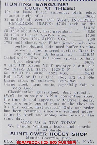 I suppose you're right. Actually any pre-1990 Microsoft stock prices could've beat any of these. They opened in March 1986 at 0.10 per share and split 9 times since then. I was born in May 1988, and have the paper from my date of birth. The stock had only split once before then, and the price was 0.39 ps. If you bought a few hundred dollars in stock on the day of my birth, you would easily have over $1M. There is also the story of wal-mart stock, which perhaps out-earned Microsoft's initial buyers, which opened in 1970. If you bought a few hundred dollars in stock then, you'd have TENS OF MILLIONS TODAY!!!! But stocks are in a league of their own. I just can't get over the early 50s Morgan dollar prices: The 2/51 offering of an uncirculated 1893-S at $79.50 ($71.55 with the 10% discount), and the Gem Proof 1895-P at $79.00 in 12/50. Just 14 years later both of those coins were around $4,000. They are now hundreds of thousands. Greg B