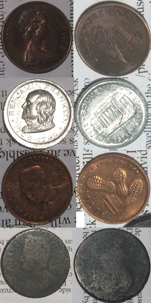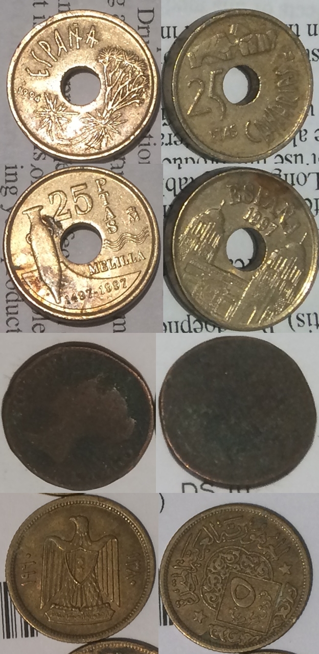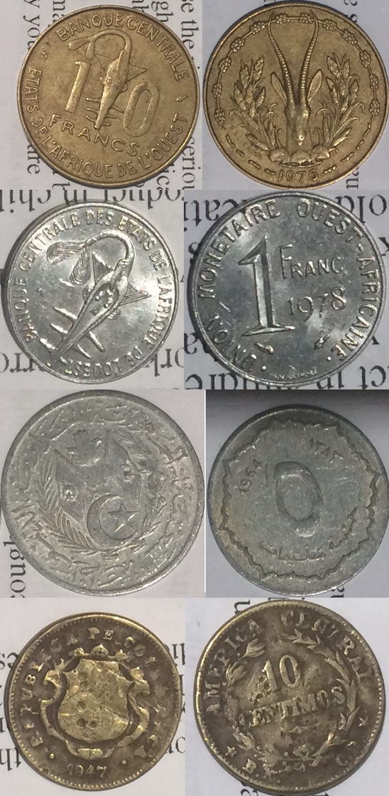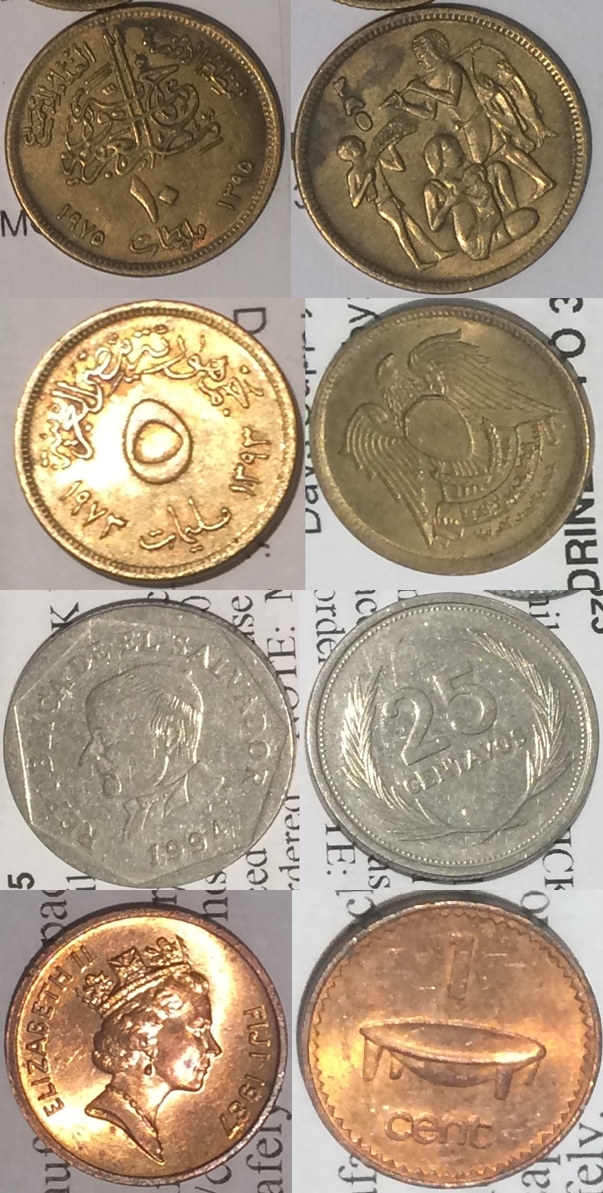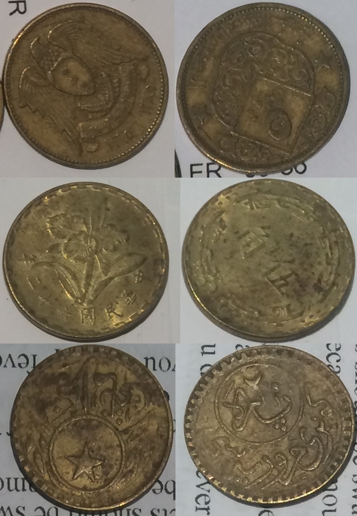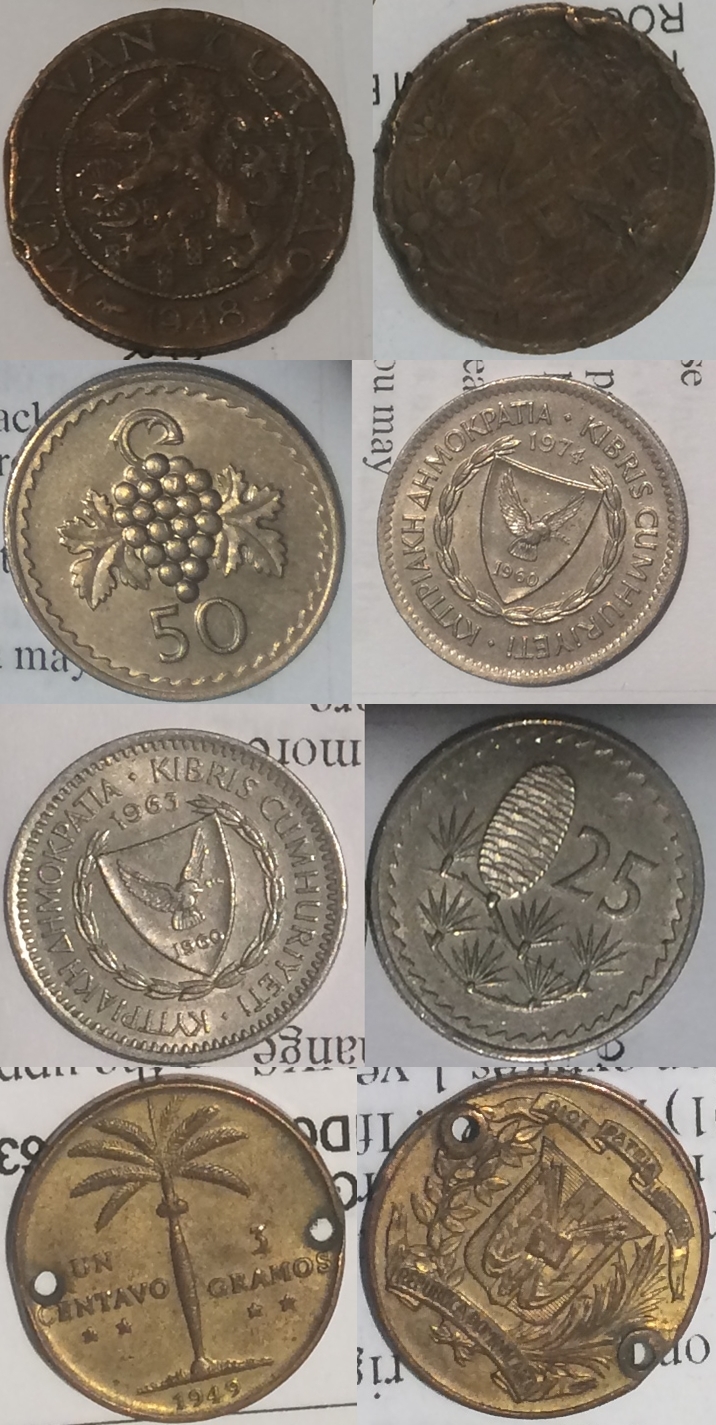 I had a lot of fun at the show because someone was kind enough to bring a World Coin bin or two and let me go through them. At 10 cents and 3 cents per coin in the bin, I happily sat myself down and went coin by coin. My world type collection isn't huge but I have to put some extra effort into not pulling coins I don't already have. It takes a little mental gymnastics to look at a coin in a half second and decide to keep or toss. I managed to pull out 48 coins/tokens I didn't own and a few I did own in better condition than what I have. Notable coins include: