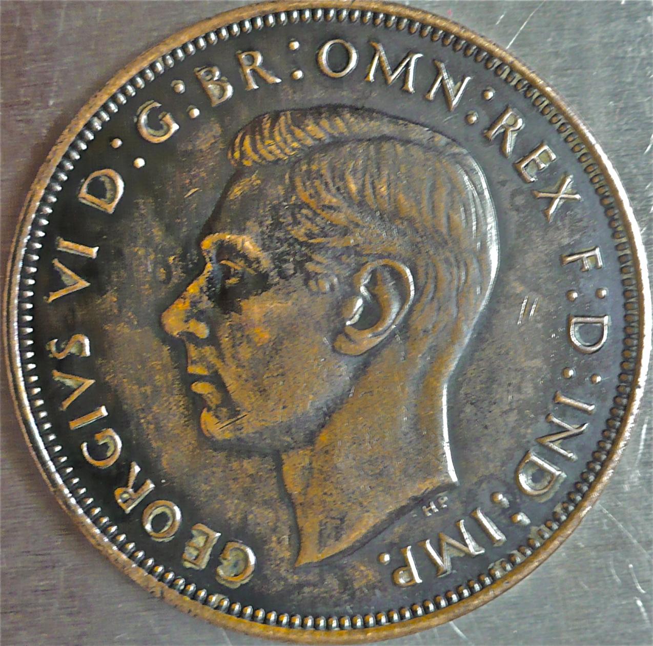 English Penny, after cleaning. I understand what little I do about chemistry from fifty years of practical experimentation, and a wee bit of reading. One of the issues you raised (which types of contaminants) is good for some serious thought; how do you determine, as in the case of the reverse of this penny, what the goop is? Water-clear, not yielding to a thumb-nail, apparently tough in the way that some adhesives can be once the solvent evaporates, which is to say solid, not even slightly gummy...but who knows otherwise without splashing something (hoped to prove innocuous) on the offending crud? I chose alcohol (denatured, ethyl) because I trust it most among all the others save perhaps mineral spirits and naphtha (Ronson lighter fluid). I go through maybe a quart of it a year, over half of that on the end of Q-Tips or dipped onto cotton make-up pads. If it fails, I move on to more aggressive aromatics; in this case such escalation was not necessary. A one hour soak in DNA reduced the offending 'glue' to a clear jelly, which yielded to a thumbnail as easily as would ham-fat to gasoline. The 9.4 gram weight did not change. A neat advantage to alcohol is it's solubility in water; a simple rinse in warm tap water and a pat dry on old cotton tee-shirt, and below you have the result. Yeah, there's still stuff around some lettering on the obverse, and a few weird spots on the reverse...but the coin is otherwise in remarkably presentable condition, IMO. So: the next cruddy coin will be chosen, photographed in all it's sordid filth...and another report filed. Thanks for tuning in!