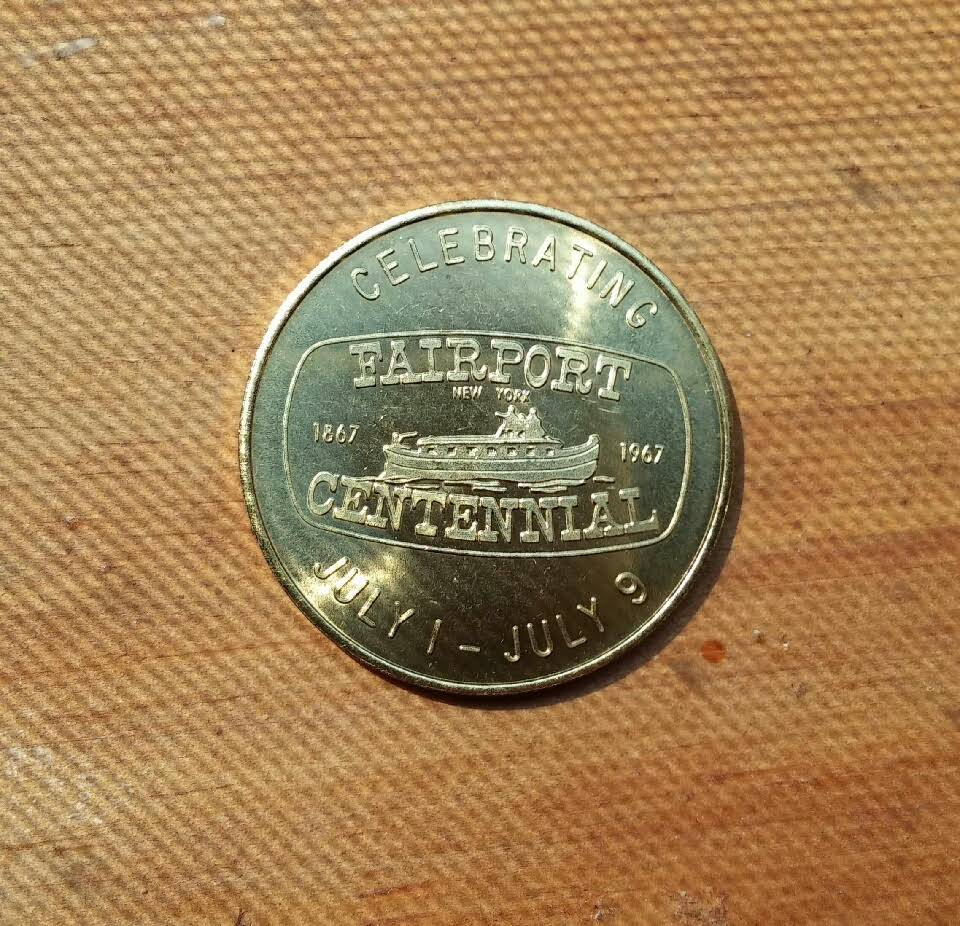 A smart business, knowing a centennial or sesquicentennial, etc., is coming, will have some "exchange" tokens minted. They make people come into your place of business, and after they expire, a smart business will still redeem them -- in essence, no different from a grocery coupon printed in the newspaper, "$3 off a $50 order," that sort of thing. Also, the Chamber of Commerce loves you for cooperating and participating, but make sure you do not toss the leftovers into the dumpster. They are a popular collectible -- I doubt that there's much home-grown numismatica available to the people of Freeport, New York, maybe some 1929 National banknotes, maybe a few CWT's.