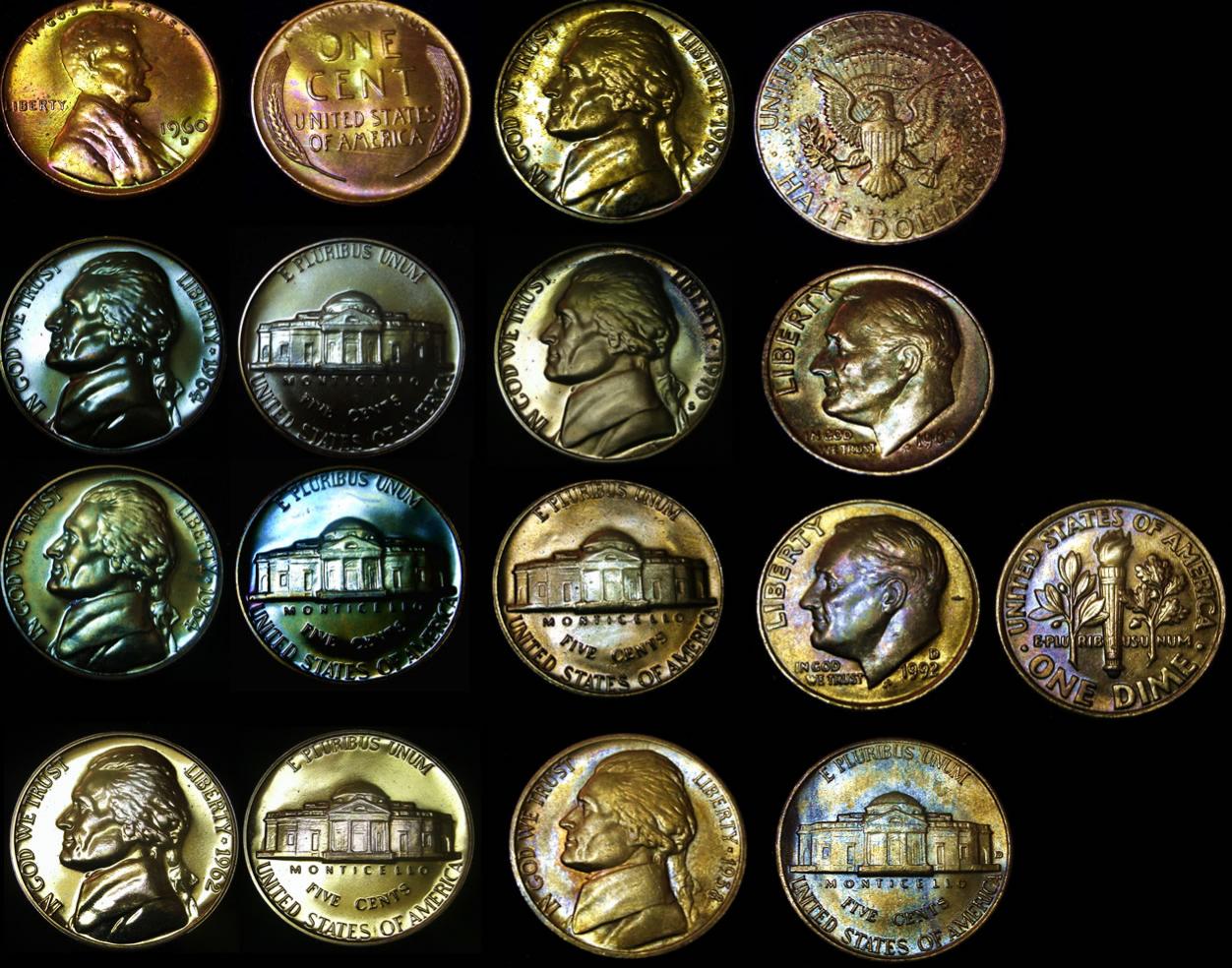 very nice toning. gotta love the great colors those 60's proof nickels get. :thumb: i have about 60-70 60's proof nickels with amazing toning like that, ranging from blue to gold and even some psychedelic cotton candy colored ones . i have been able to pick them up as little as $3 each. i have gotten about 20 out of proof sets myself