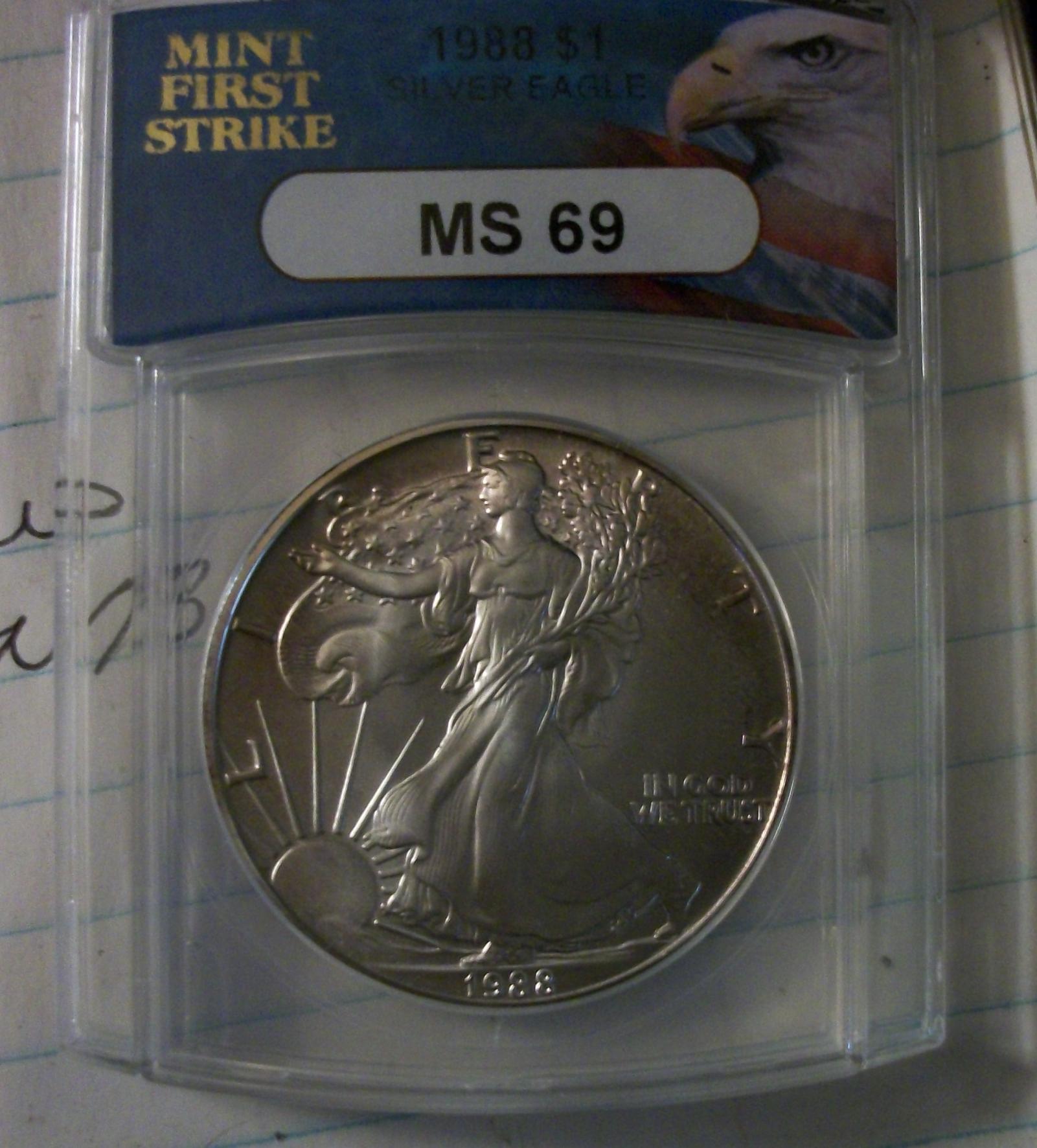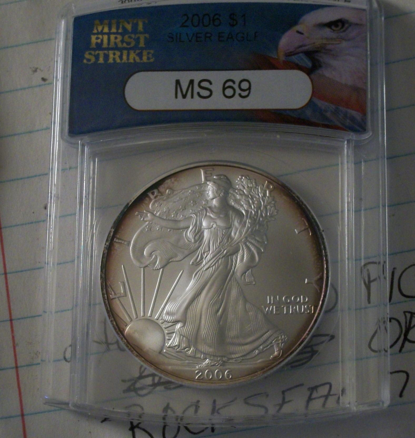I decided to check out some coins that I've had stored for several years. They're slabbed ASE's that were stored in a NGC box that holds 20 slabs. 18 of the coins were in NGC slabs and the other 2 were ANACS. The 2 that are in ANACS slabs have started toning while the others have not. I suppose the ANACS slabs aren't airtight and the slabs themselves are causing the toning. I've got others that are raw and none of them show any toning.