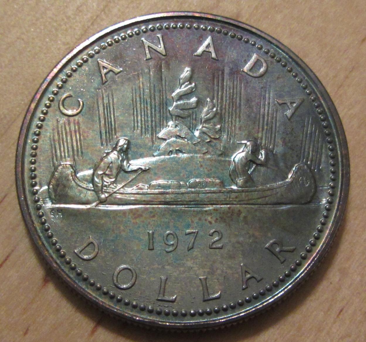 Here's a pair of commemorative Canada Silver Dollars, each .500 fine silver. Each is $24 dlvd, or both for $45 dlvd. Photos don't do these justice, all natural as color came from the original mint packaging. These are amazing! Paypal gift or money order. Please feel free to ask any questions, thanks guys! 1971 Canada - *Obverse: Mottled Gold & Russet w/blue *Reverse: Mottled blue with eclipse of russet & gold 1972 Canada (Voyageur) - *Obverse - Mottled blue & green w/hint of russet red Reverse *Beautiful mottled blue & purple