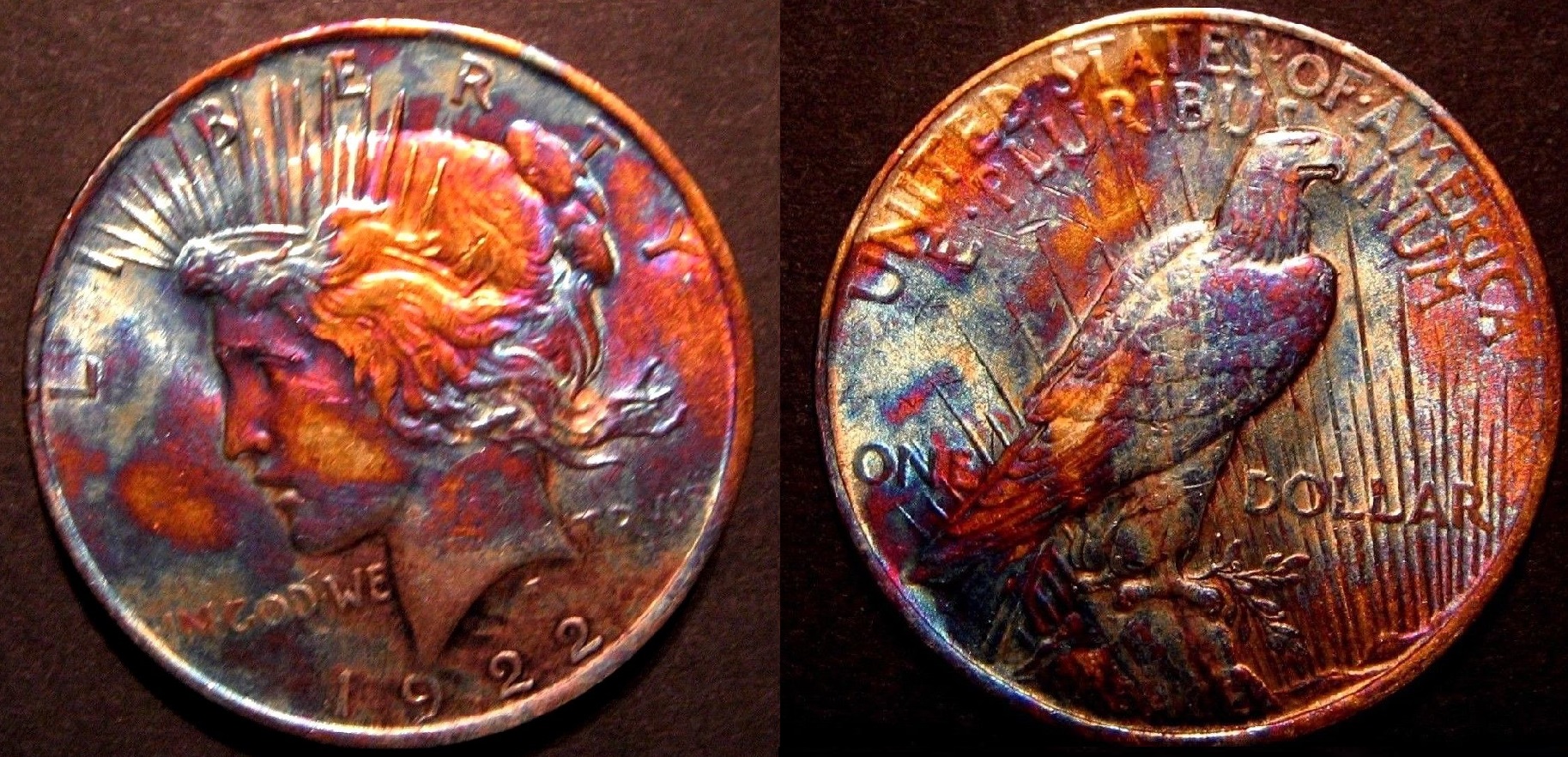 That rainbow toned Morgan Dollar is a quintessential example of a bag toned Morgan and is absolutely naturally toned. If you are interested in the science behind it, please refer to @Morgandude11 post above or the link below written by Jason Poe. What You Need to Know About: The Science of Toning While we are on the subject of natural vs artificial toning, all of the coins shown in this post are artificially toned with the application of sulfur and heat.