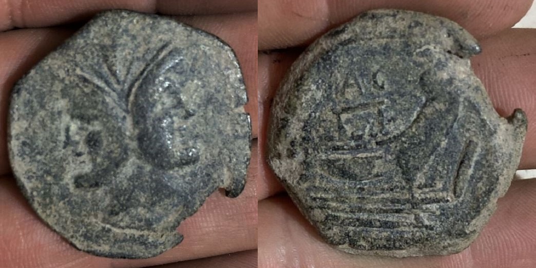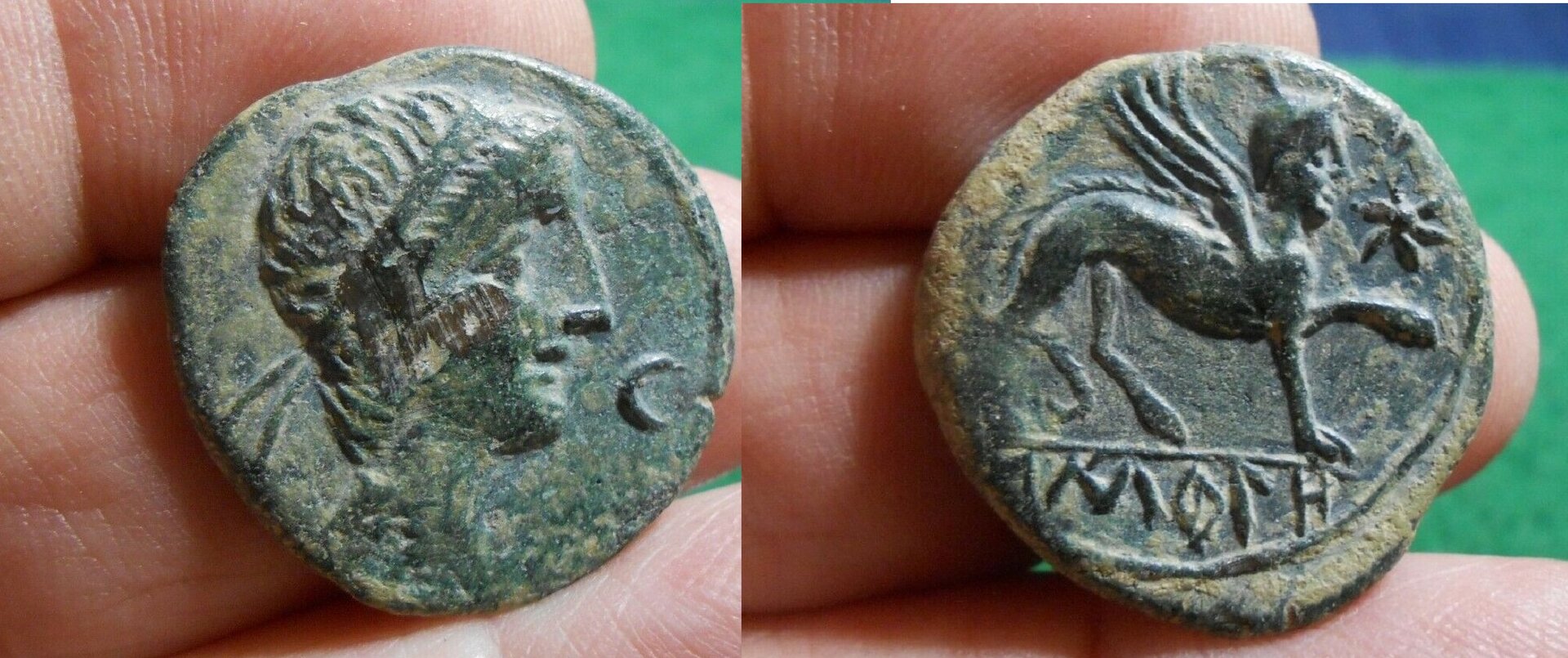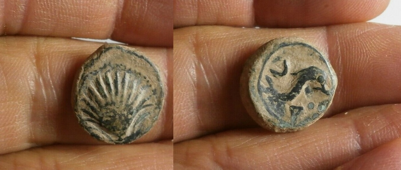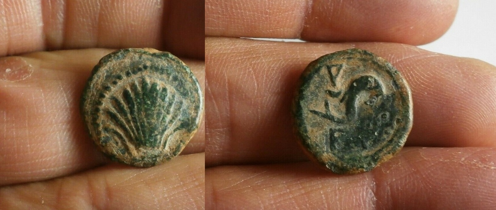 Was looking at my top 10 from 2020 and one of them was a different version of the two I purchased this year and put in my top 10 for 2021. Saguntum Spain, 2nd Cent. BC AE Sextans, 3.76 grams Obv: Scallop shell. Rev: Dolphin, crescent above,three dots and Iberian letter A below. The Siege of Saguntum was a battle which took place 219 BC with the Carthaginians and the Saguntines at the town of Saguntum, near the modern town of Sagunto in Spain. The battle is remembered because it triggered one of the most important wars of antiquity, the Second Punic War.