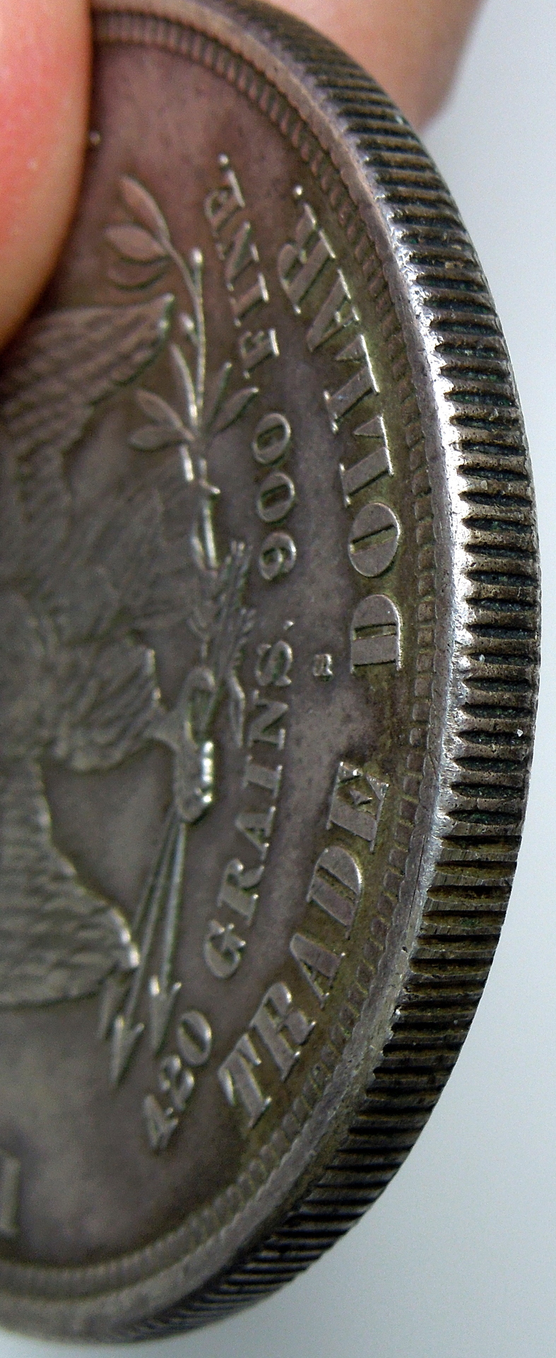 It got by me until I took the pics. And it got by the dealer I bought it from. I need to spend more time on trade dollars before I buy anymore. Personally, I think the design is one of the most beautiful of all regular issue U.S. coinage.