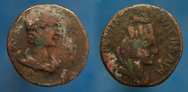 Its a little rough and I got it thinking it was Julia Mamaea but a nice surprise that it was Tranquillina. Tranquillina, Augusta 241-244 A.D., Singara, Mesopotamia Bronze AE 26, S 3867, BMC 14, Singara mint, 180°, 241 - 244 A.D.; obverse CAB TPANKVΛΛINA CEB, diademed and draped bust right; reverse CVP CEΠ KOΛ CINΓAPA, veiled and turreted bust of Tyche right, centaur Sagittarius above, discharging bow; rare
