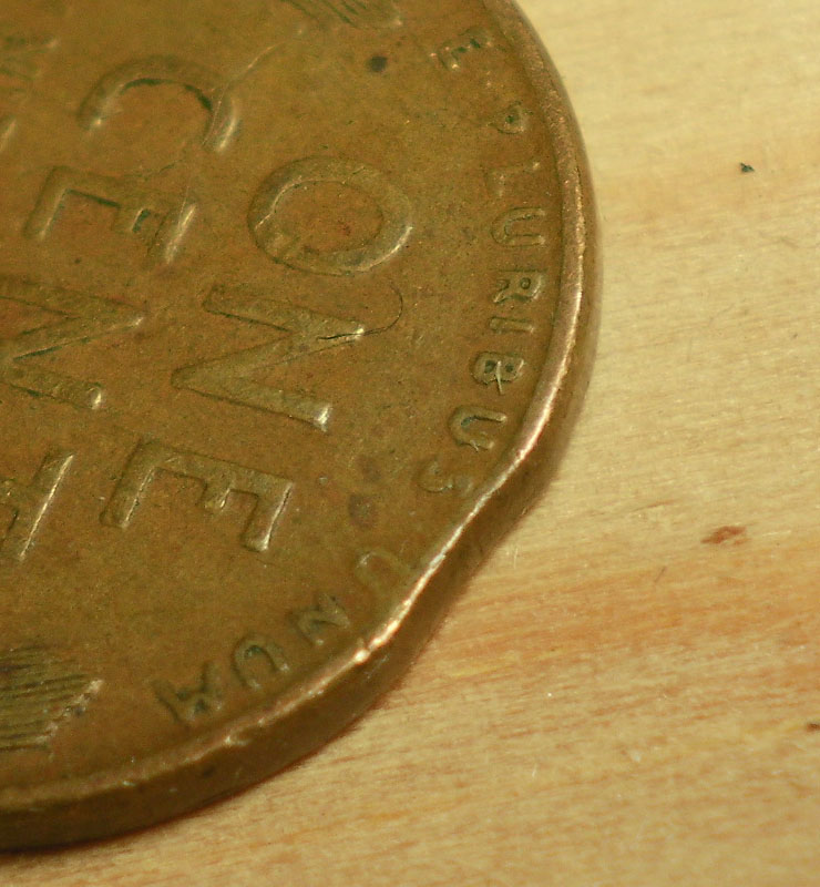 Let me know what that 69 turns out to be. Im interested regardless. If you look at the edge/side of the coin and the indentation doesnt stick out or you can feel it or see any metal sticking out past the tolerence of an average cent you have. then try bang two cents together maby and compare them. Only you could say for sure at this point. Does the one with the cud have any damage on the edge of the coin like a thin object was pressed into the side of the coin? If so its just pmd! but it looks legit!