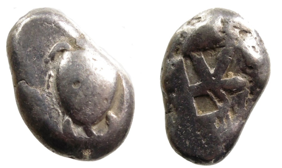 I am the proud owner of this bale of Aegean turtles. Yep, a group of turtles is called a bale. I’d sure appreciate some help authenticating & dating these beautiful silver stators. Let me introduce each of the turtles (to be dated) and provide a little background information which may be entertaining. From very early times until its conquest by Athens in B.C. 456 Aegina was one of the greatest commercial states of Greece. Here is a great link describing Aegina and the turtle coins of the BritishMuseum: http://www.snible.org/coins/hn/aegina.html