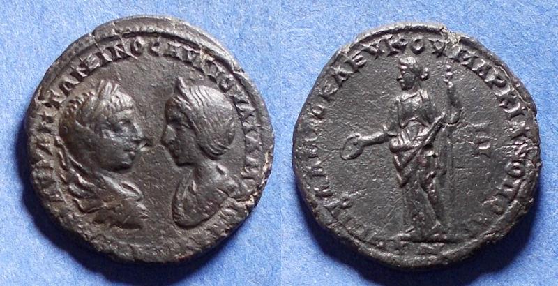 Ah, @John Anthony, that reminds me. I do have one other Severus Alexander Severus Alexander and Julia Maesa 222-235 AD AE28 Markianopolis, Moesia Inferior Obverse: AVT K M AVΡ CEVH AΛEΞANΔΡOC IOVLIA MAICA, laureate, draped bust of Severus Alexander right, facing draped bust of Julia Maesa left Reverse: (YΠ TIB) IOYΛ ΦHCTOY MAΡKIANOΠOΛEITΩN, Dikaiosyne standing left, holding scales and cornucopiae; E in right field Reference: Varbanov 1866 Very similar to yours. I thought I had my attribution wrong after reading yours.