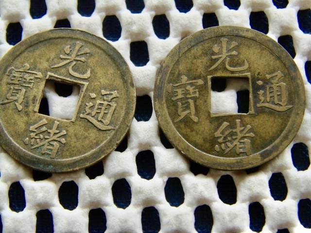 Kwangtung province, China, machine struck 1 cash, 1890 to 1908. These are very common and worth a couple dollars each.