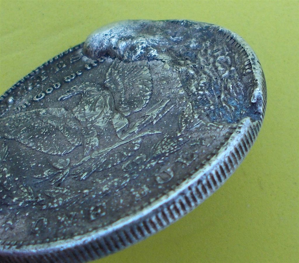World's Ugliest Morgan Contest Well, not really a contest since there's no prize here but for the acclaim of your fellow Coin Talkers that you have the most hideous Morgan on the planet. It's all in the "details" as the grading companies put it. I'll start this off with an 1888 that evidently was in a fire. So far as I can surmise, it must've been resting more or less on end when the melt from another coin dripped onto its rim (this example being actually a bit overweight now, by about six tenths of a gram). Let's see your battered, scarred, defaced, et cetera survivors. .