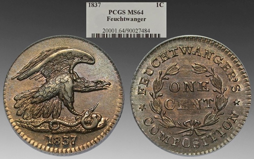 United States (New York): 1837 nickel silver private pattern cent, Feuchtwanger's Composition