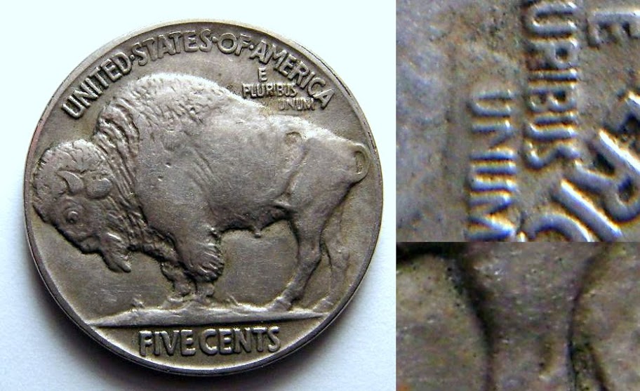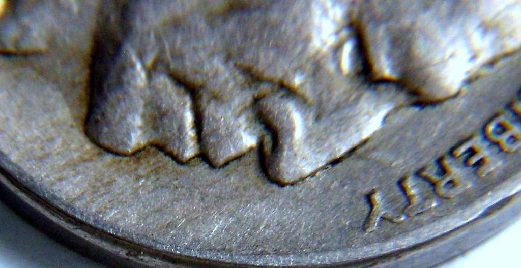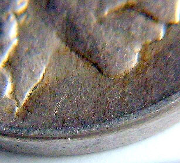 Looks to be the result of a clashed die. This is opposite E PLURIBUS UNUM and it is not uncommon to find traces of the motto in front of the Native American's face almost in the form of a mask.