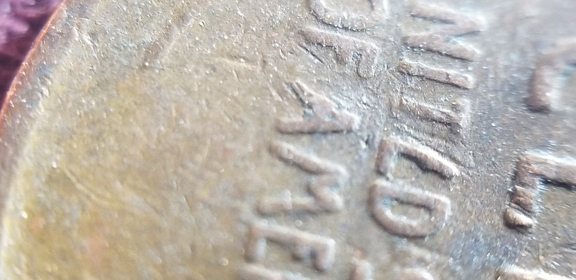 DEFDAM - Definitely Damage The E took a hit. Years of circulation wear eliminated the evidence. Copper is soft enough to be moved and smoothed.