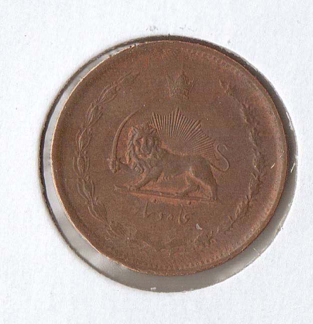 Persia or Iran 50 Dinars. The date to me looks like AH 1322 which would be AD 1944. My catalog says that some were copper and some were bronze.