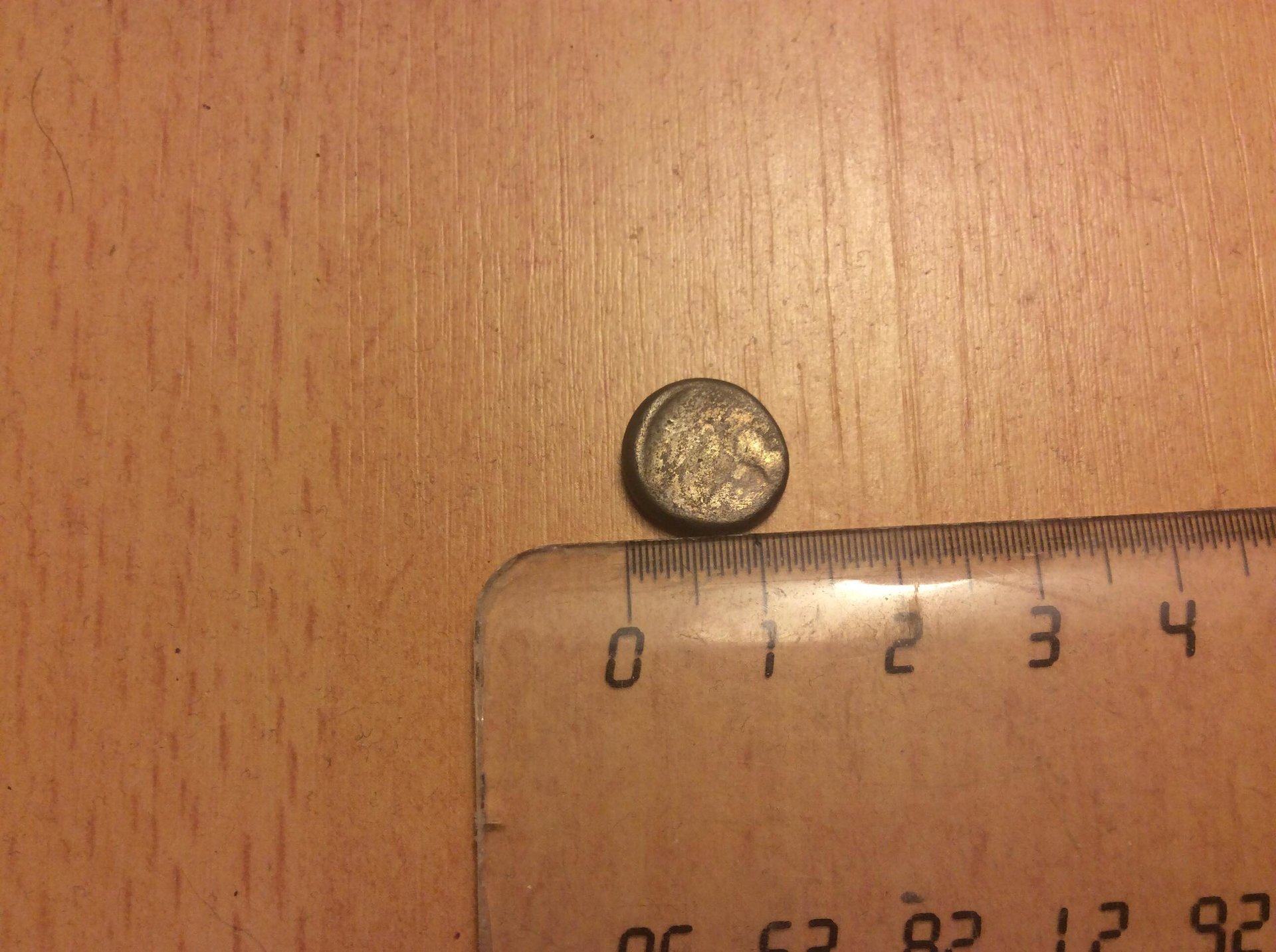 Looks like the same side (reverse?) in the above photos. The obverse (original photo) looks like it might be Herakles wearing a lion skin.