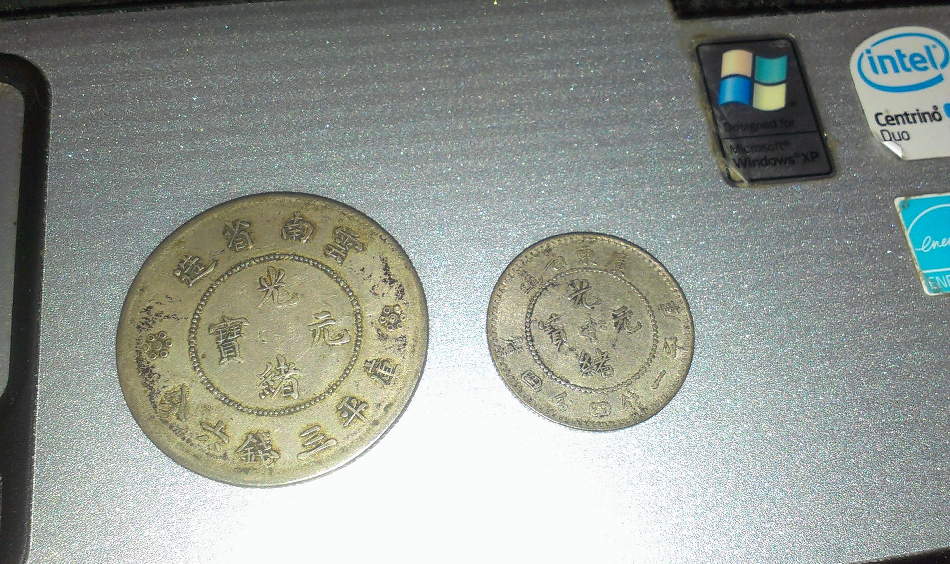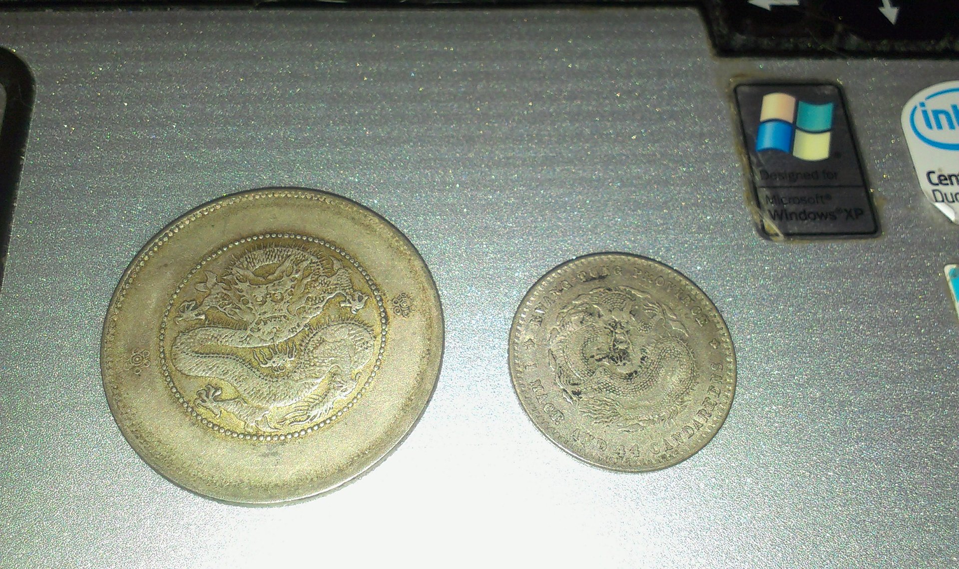 Not sure what this large Chinese coin is (the one next to it, for size reference, is a 1 Mace & 4.4 Candareens (aka 20 cents)). The unknown coin measures 32mm and is approximately 13 grams. The obverse legend appears to indicate a 50 cent piece from Kiagnan province, but I can't find a match for it in Krause (all the Kiagnan provincial pieces I'm seeing have English lettering around the dragon on the reverse). Help attributing it would be appreciated.