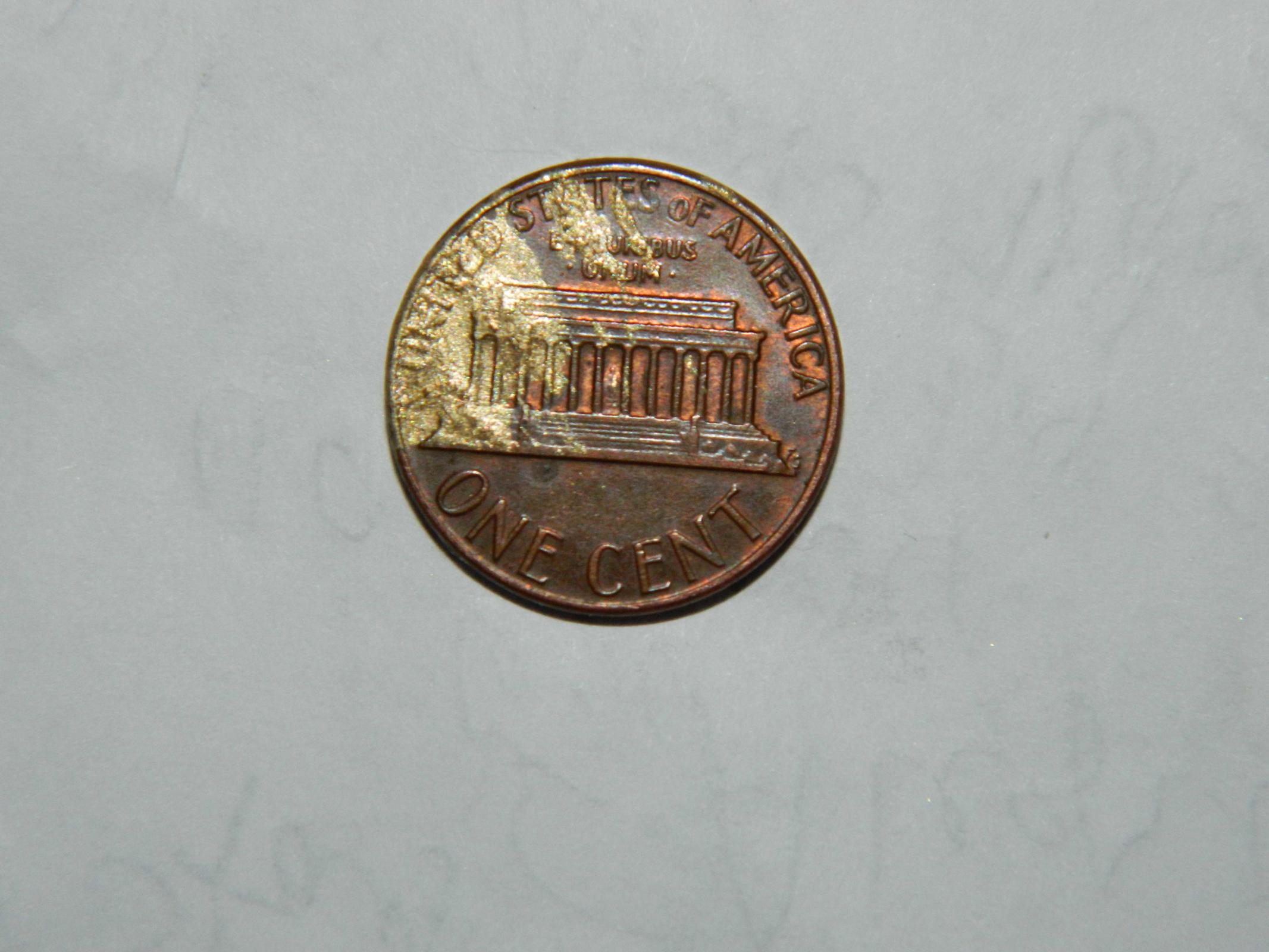 Hi Everyone, I'm new to coin collecting and i was going through a jar of pennies and discovered this penny. I was wondering if this was a mistake on the coin or if it was just damaged from wear and tear. I thought I had seen this as a mistake when the coin was made but I wasn't sure and I couldn't find it again. If you could let me know I would really appreciate. The coin is a 1984 D Mint Regular Lincoln Penny with the discoloration on the back and possibly some deformation, I could not clearly tell.