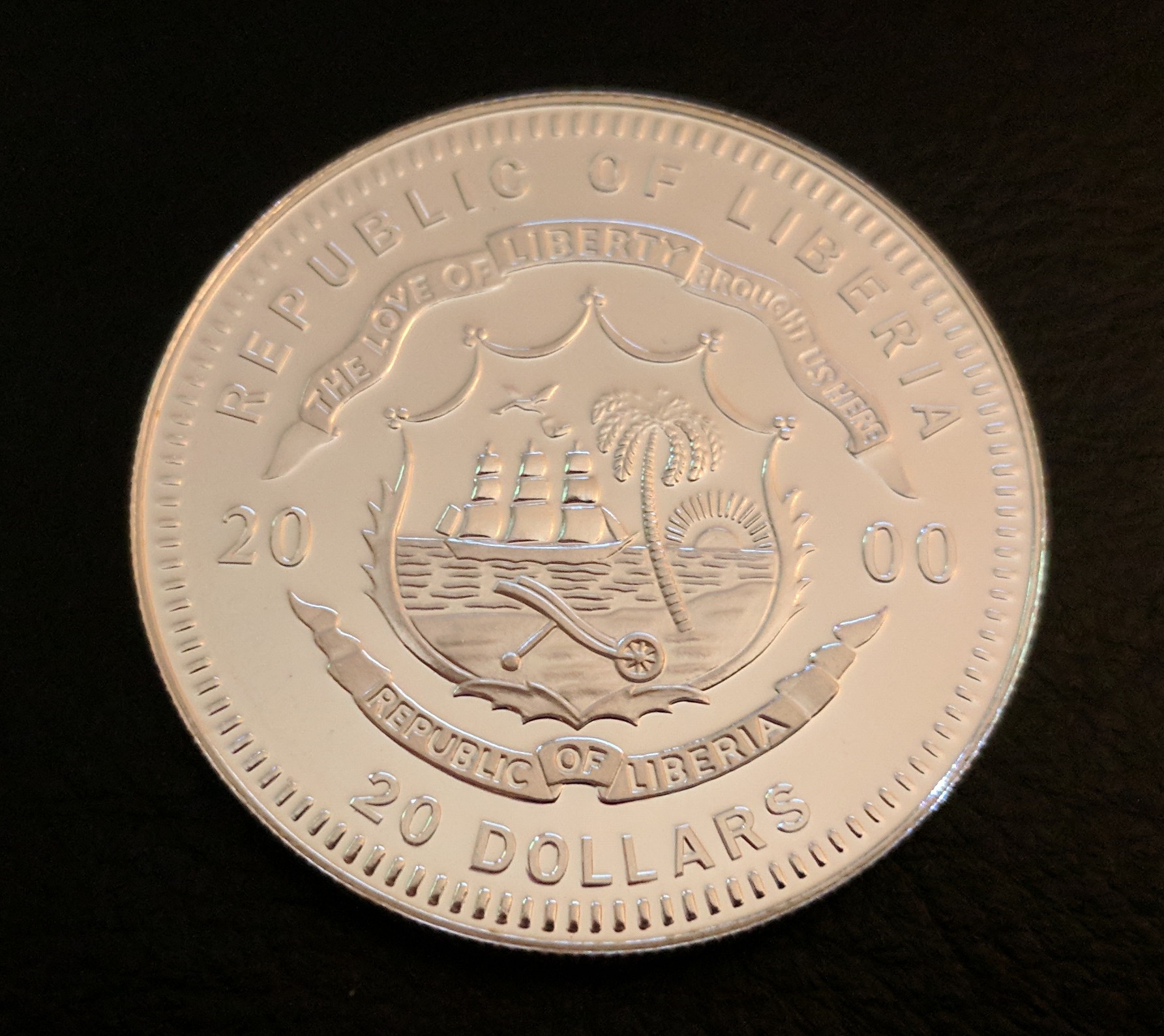 I have two $10 Liberia coins both dated 2000. One has the multicolor Lynx and the other a multicolor Moose. Both appear to be silver. The Lynx has a different denomination of $20 on the reverse. Anybody have some insight?