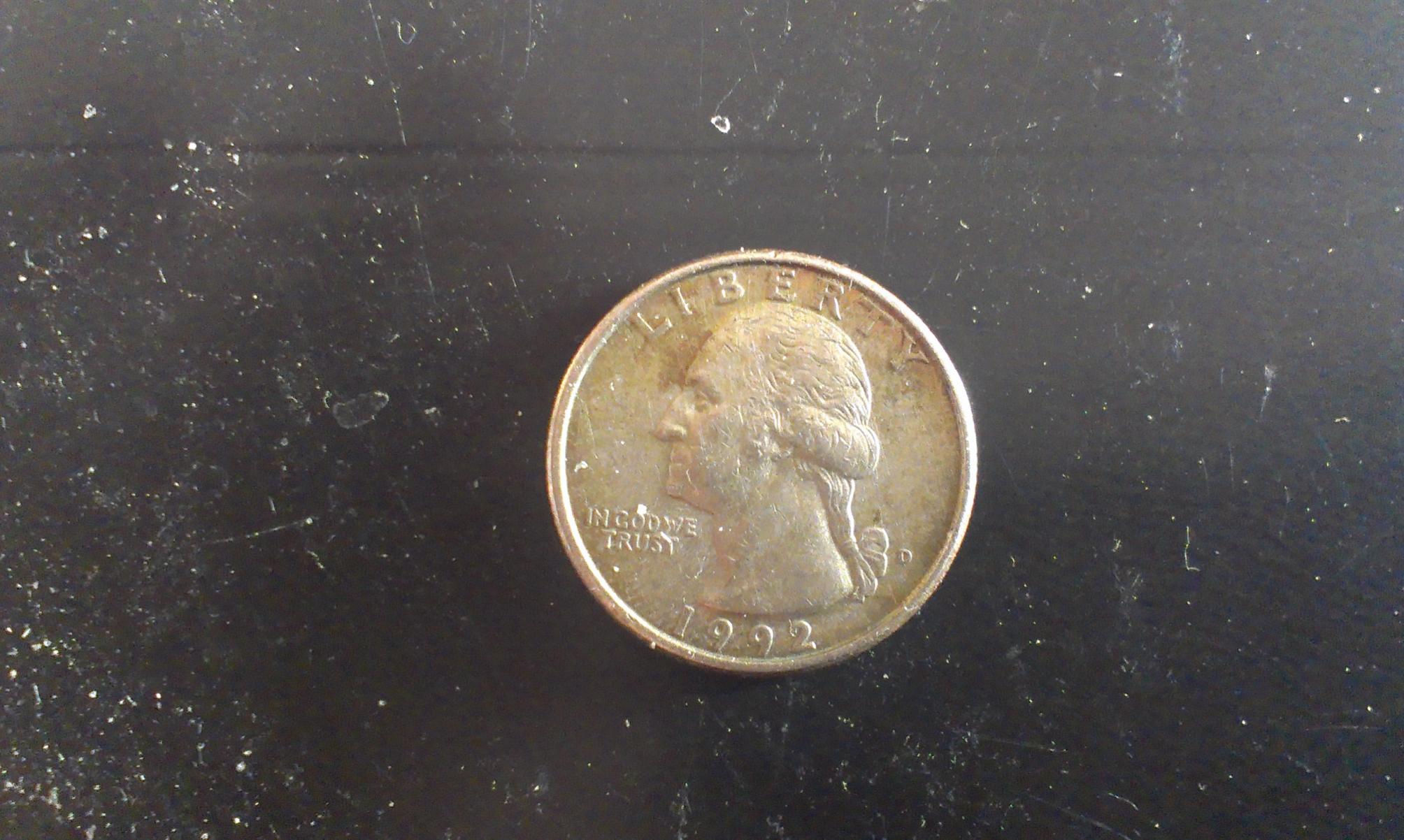 Quarters are not plated. Your coin does not look as though it is missing its clad layer, it looks like it suffers from environmental damage.