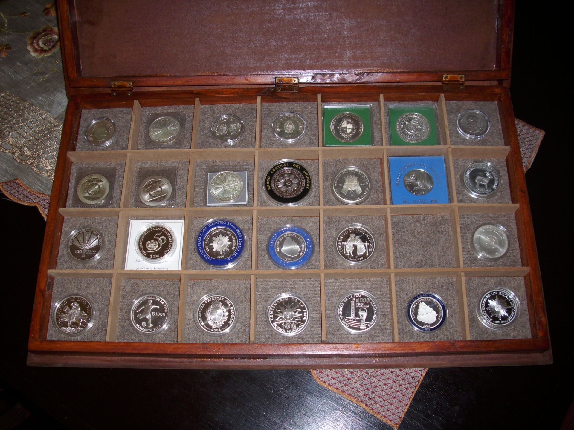 Hello all, this one is my almost complete collection of Uruguayan commemorative silver coins, from 1961 (the first one) until 2011 (the last coined) In total, 29 coins of which I have 28... The "absent" coin is very difficult of find, and his value is high, is the same piece of 1969 $ 1.000, but resealed commemorating the 30th. anniversary of the Banco Central of Uruguay, only 500 coins was resealed.. Te last picture is the "absent"