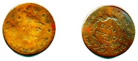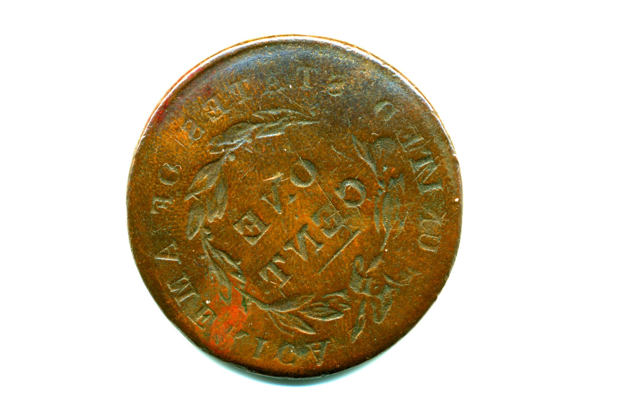 This coin may be a US large cent. The planchette is copper, approximately 1 1/8 inch (29 mm) in diameter and 1/8 inch (2 mm) thick. The designs and lettering are incused as opposed to being raised above the surface. It appears to have been pressed between two coins, resulting in image and lettering being reversed. The obverse of the coin is slightly dished (concave), which may account for the lighter impression. No date is visible. Any thoughts on this one? Could it be authentic? Does it have any special value?
