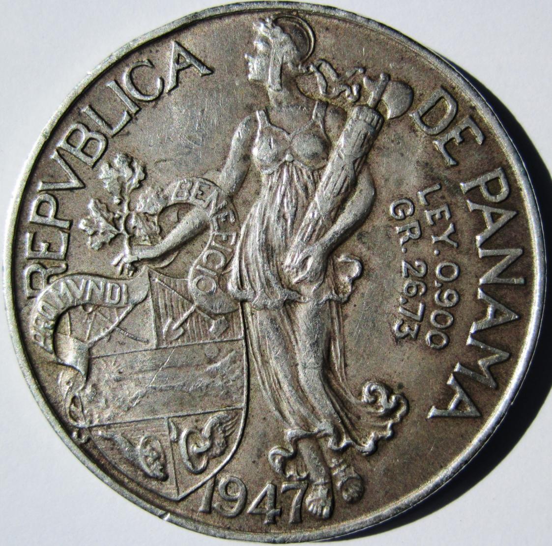 KM 13 1947 Balboa Have this one, 1947 Balboa minted for Panama by Philadelphia mint on silver dollar blanks.