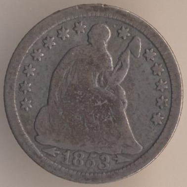 Half dime 1853, "Liberty Seated", Variety 3 - Arrows at date (1853-1855).
