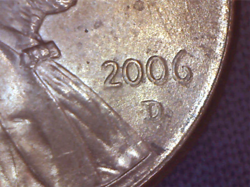 One of the problems encountered with the set-up for this scope is that you can't set it completely vertical to take photos from directly overhead because it looks like the base is in the way. I would think that it would be difficult to get close-ups in this fashion if the specimen was a large coin. Did it come with any accessories to overcome this? Is there any problem with stability with the scope in a vertical position? Can you zoom in closer than what you've shown in the pic of the Lincoln date/mm? Sometimes it's necessary to show more detail like these............ Chris