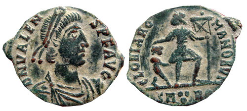 VALENS: NOT Rome mint: RI Valens AD 364-378 AE Red Follis Siscia Mint Obv-Rev.jpg NOT Rome mint: RI Valens 364-375 CE AE 17mm Reduced Folles SMAQS Aquilea mint Obv-Rev.jpg