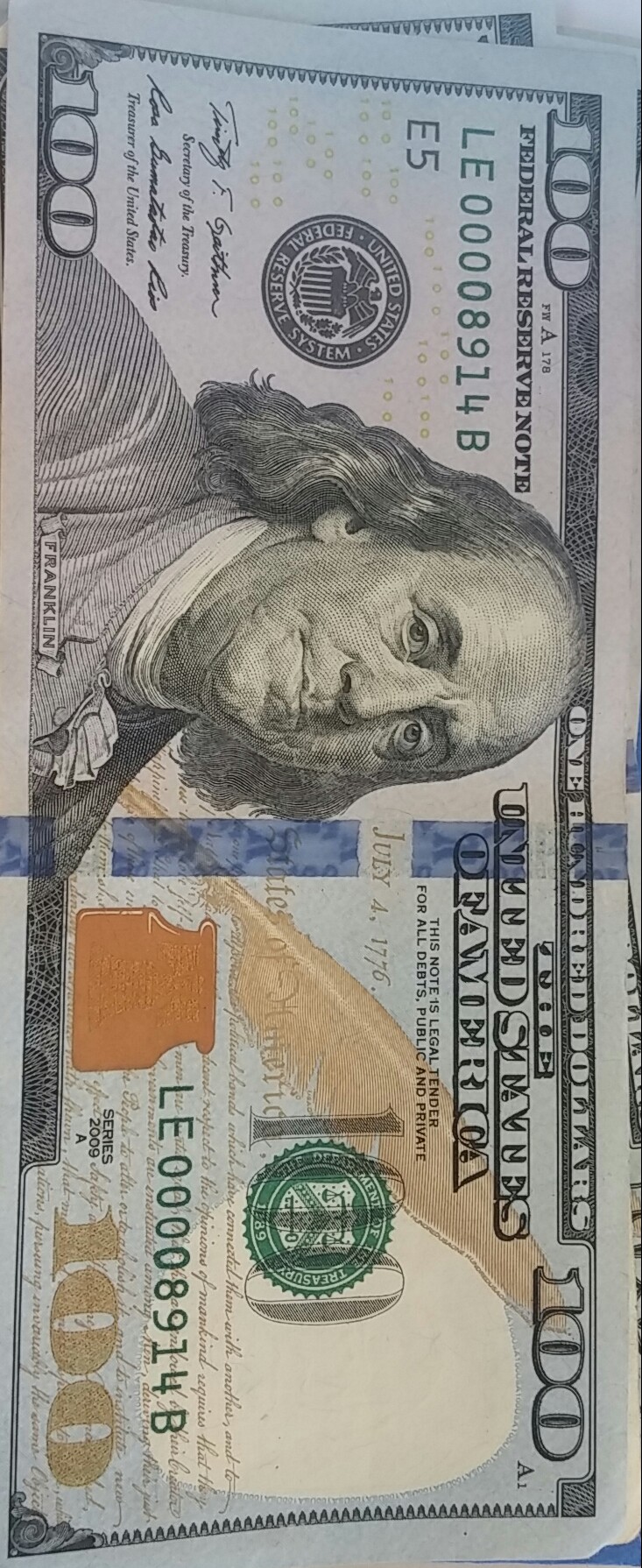 Still just $100? I couldn't find it on uspapermoney.info... am I just missing it? LE00008914B And the last zero looks funky. I hope it's not a fake. http://www.uspapermoney.info/serials/f2009_h.html