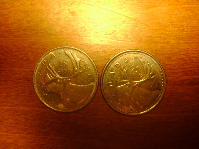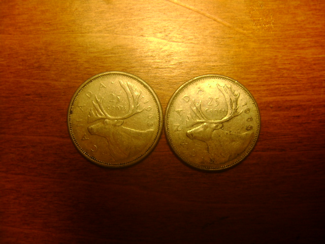 I also question these from Canada. the 2 below appear to be Silver from 1963 and 68 and the one on the right appears to be a slightly different than the other 25 cent pieces